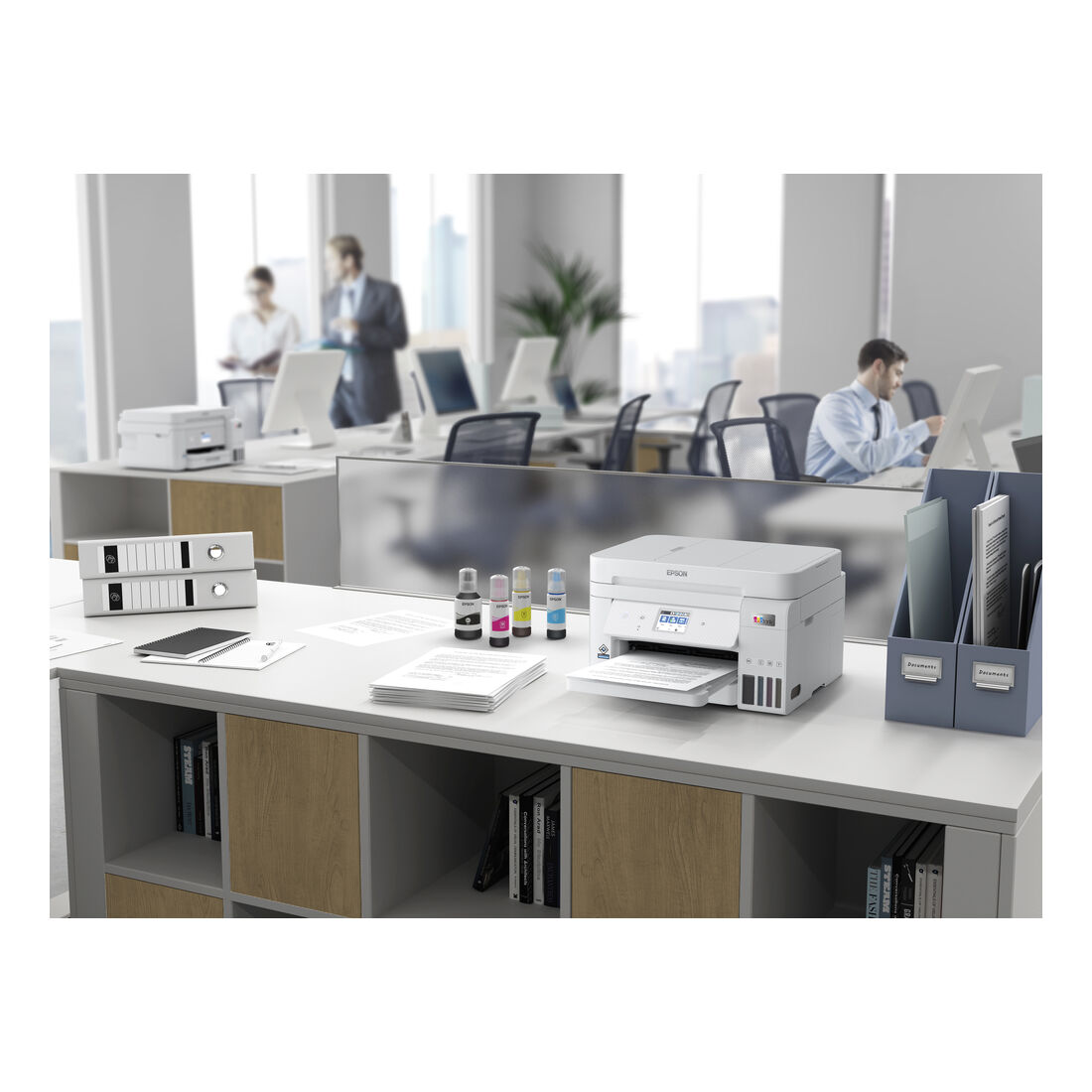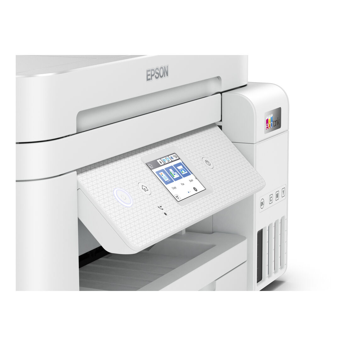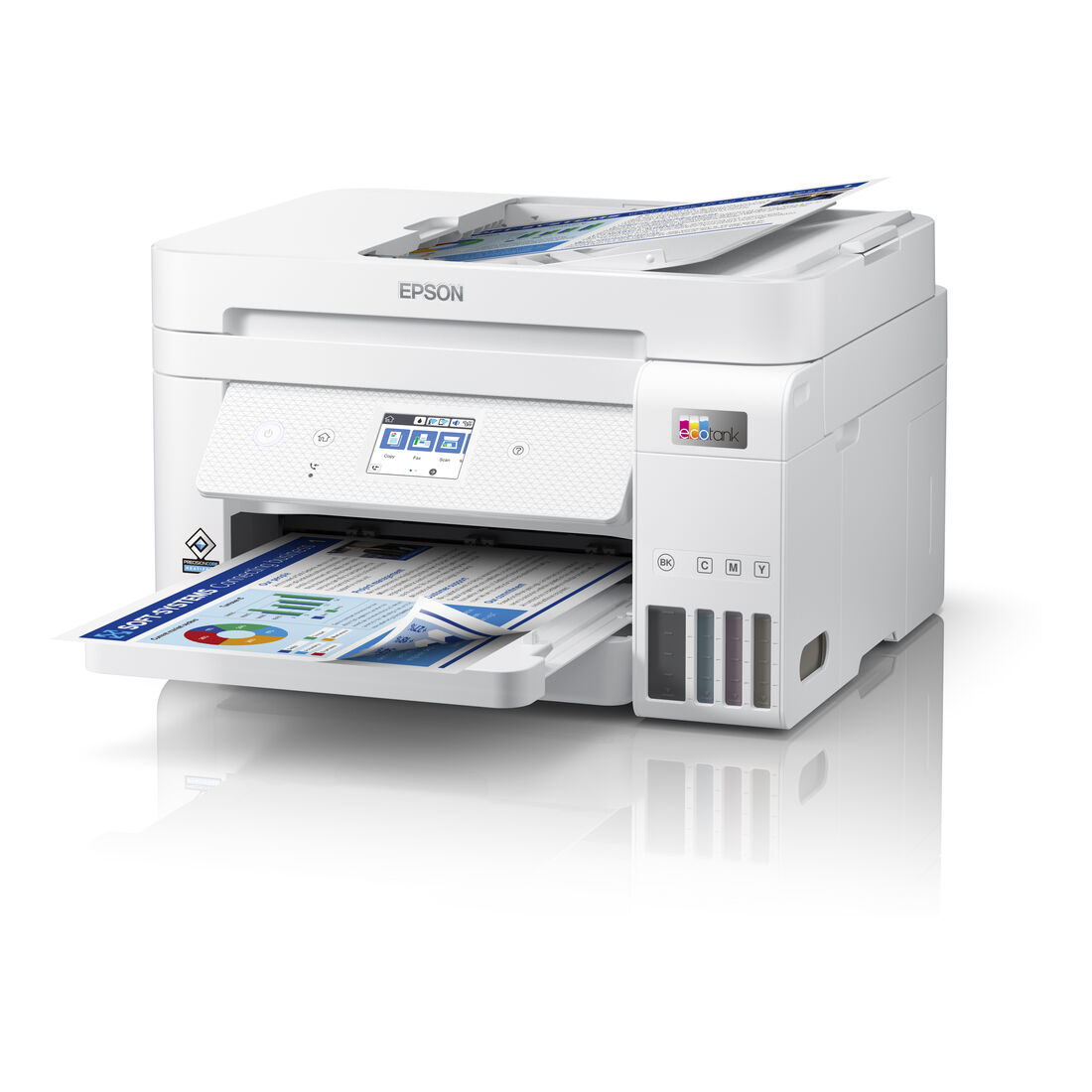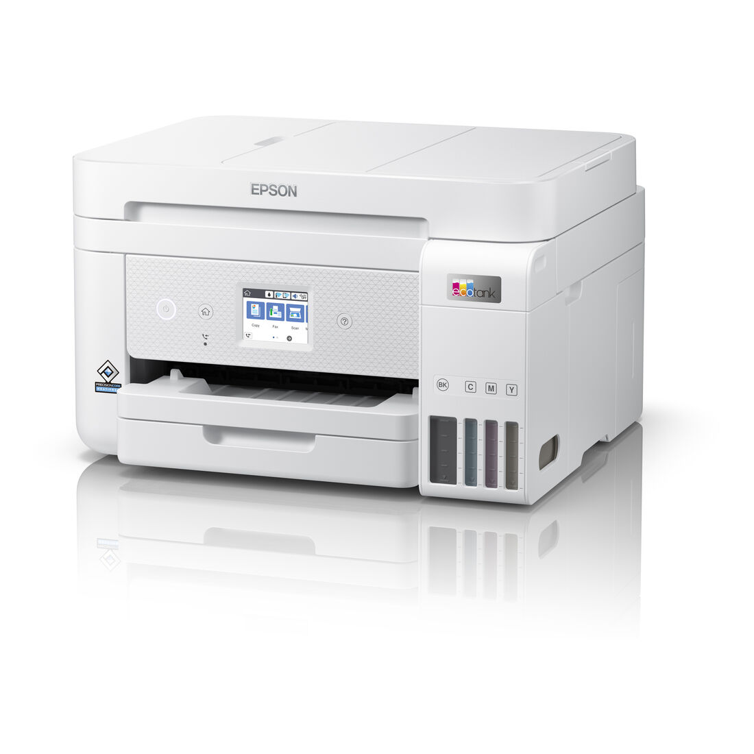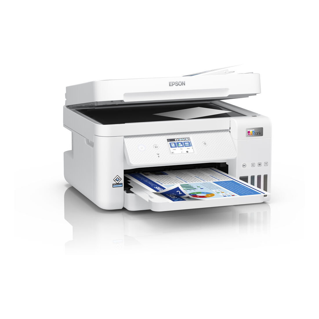 Epson EcoTank ET-4856. Tecnologia di stampa: Ad inchiostro, Stampa: Stampa a colori, Risoluzione massima: 4800 x 1200 DPI, Velocità di stampa (colore, qualità normale, A4/US Letter): 20 ppm. Copia: Copia a colori. Scansione: Scansione a colori, Risoluzione di scansione ottica: 1200 x 2400 DPI. Funzione duplex: Stampa. Massimo formato carta serie ISO A: A4. Wi-Fi. Stampa diretta. Colore del prodotto: Bianco