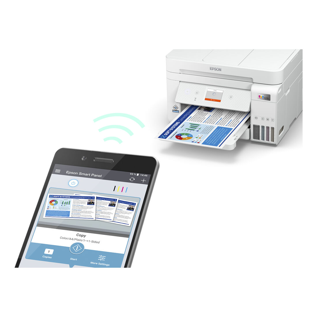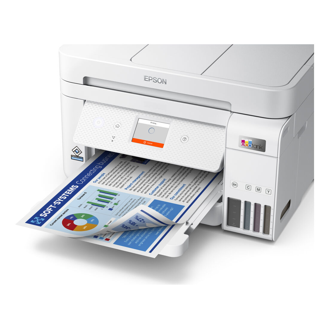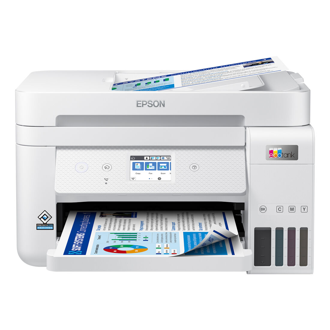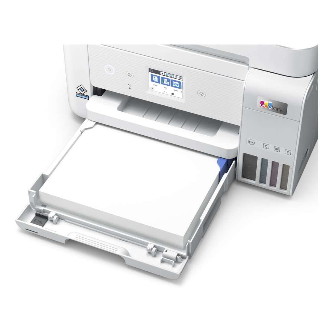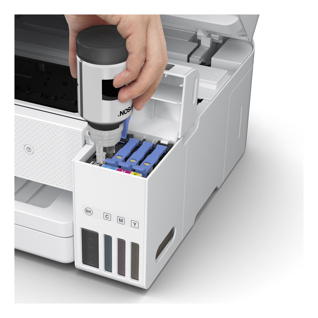 Epson EcoTank ET-4856. Tecnologia di stampa: Ad inchiostro, Stampa: Stampa a colori, Risoluzione massima: 4800 x 1200 DPI, Velocità di stampa (colore, qualità normale, A4/US Letter): 20 ppm. Copia: Copia a colori. Scansione: Scansione a colori, Risoluzione di scansione ottica: 1200 x 2400 DPI. Funzione duplex: Stampa. Massimo formato carta serie ISO A: A4. Wi-Fi. Stampa diretta. Colore del prodotto: Bianco