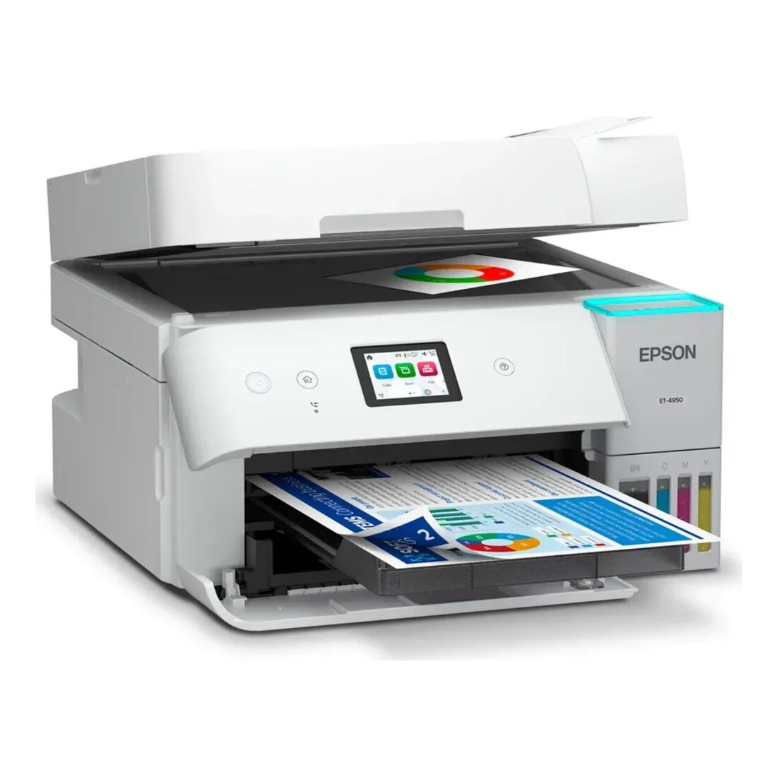 Epson EcoTank ET-4956. Tecnologia di stampa: Ad inchiostro, Stampa: Stampa a colori, Risoluzione massima: 4800 x 1200 DPI, Velocità di stampa (colore, qualità normale, A4/US Letter): 23 ppm. Scansione: Scansione a colori, Risoluzione di scansione ottica: 1200 x 2400 DPI. Fax: Fax a colori. Funzione duplex: Stampa. Massimo formato carta serie ISO A: A4. Wi-Fi. Stampa diretta. Colore del prodotto: Nero