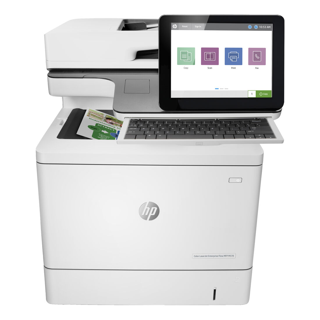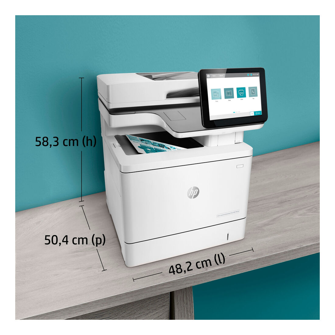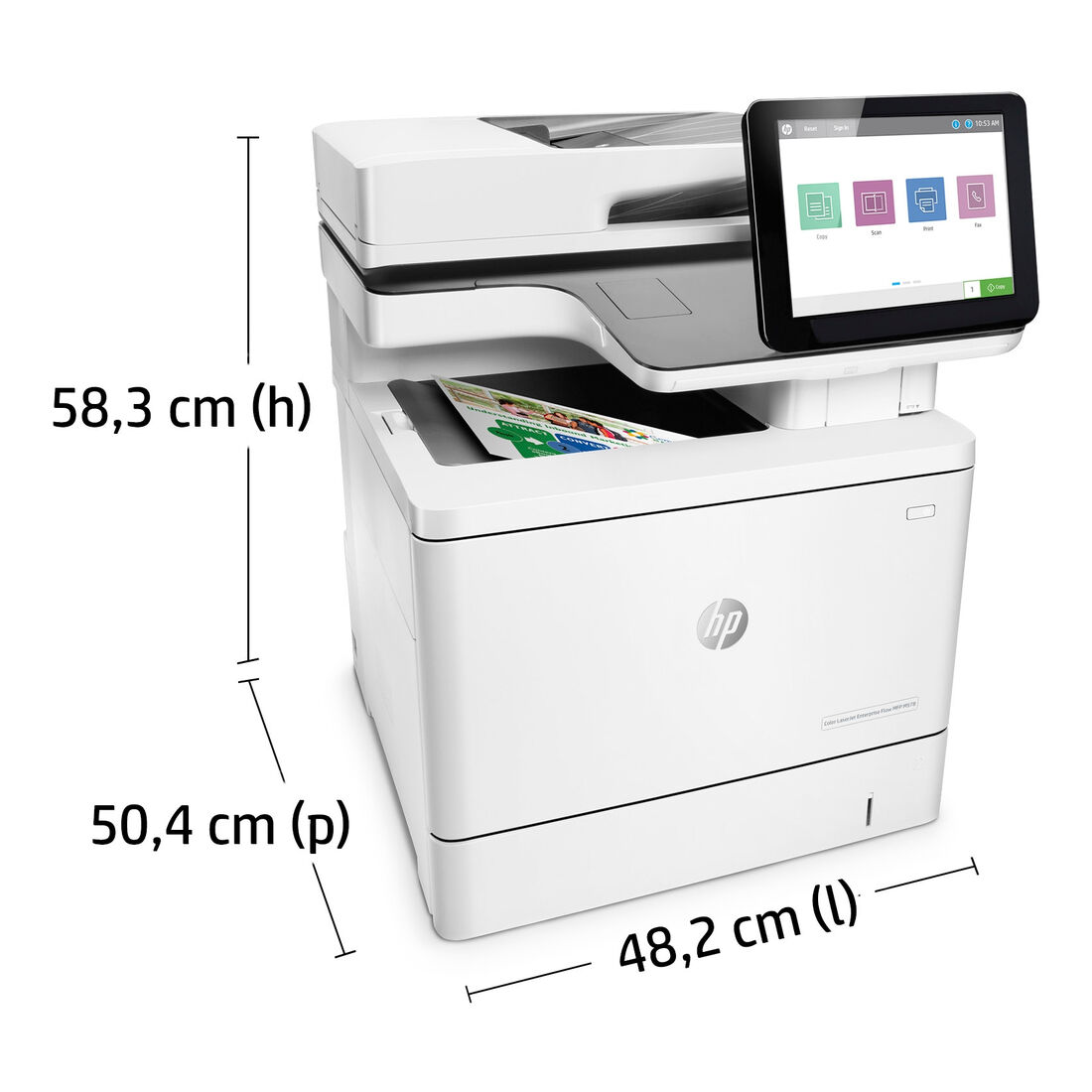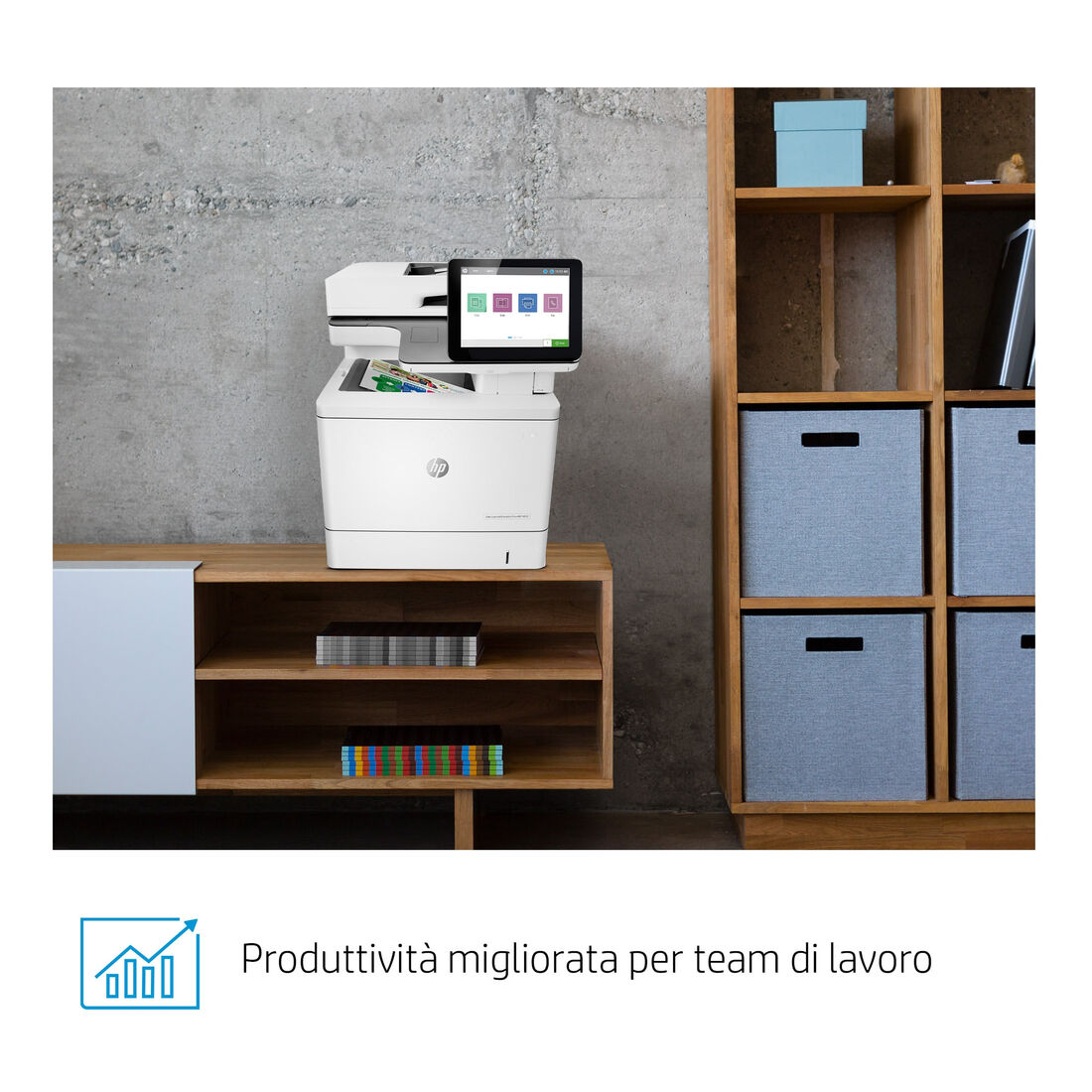 HP Color LaserJet Enterprise Flow Stampante multifunzione Enterprise Color LaserJet Flow M578c, Stampa, copia, scansione, fax, Stampa fronte/retro; ADF da 100 fogli; efficienza energetica. Tecnologia di stampa: Laser, Stampa: Stampa a colori, Risoluzione massima: 1200 x 1200 DPI, Velocità di stampa (colore, qualità normale, A4/US Letter): 38 ppm. Copia: Copia a colori, Risoluzione di copia massima: 600 x 600 DPI. Scansione: Scansione a colori, Risoluzione di scansione ottica: 600 x 600 DPI. Fax: Fax a colori. Funzione duplex: Stampa, Copia, Scansione. Massimo formato carta serie ISO A: A4. Stampa diretta. Colore del prodotto: Grigio