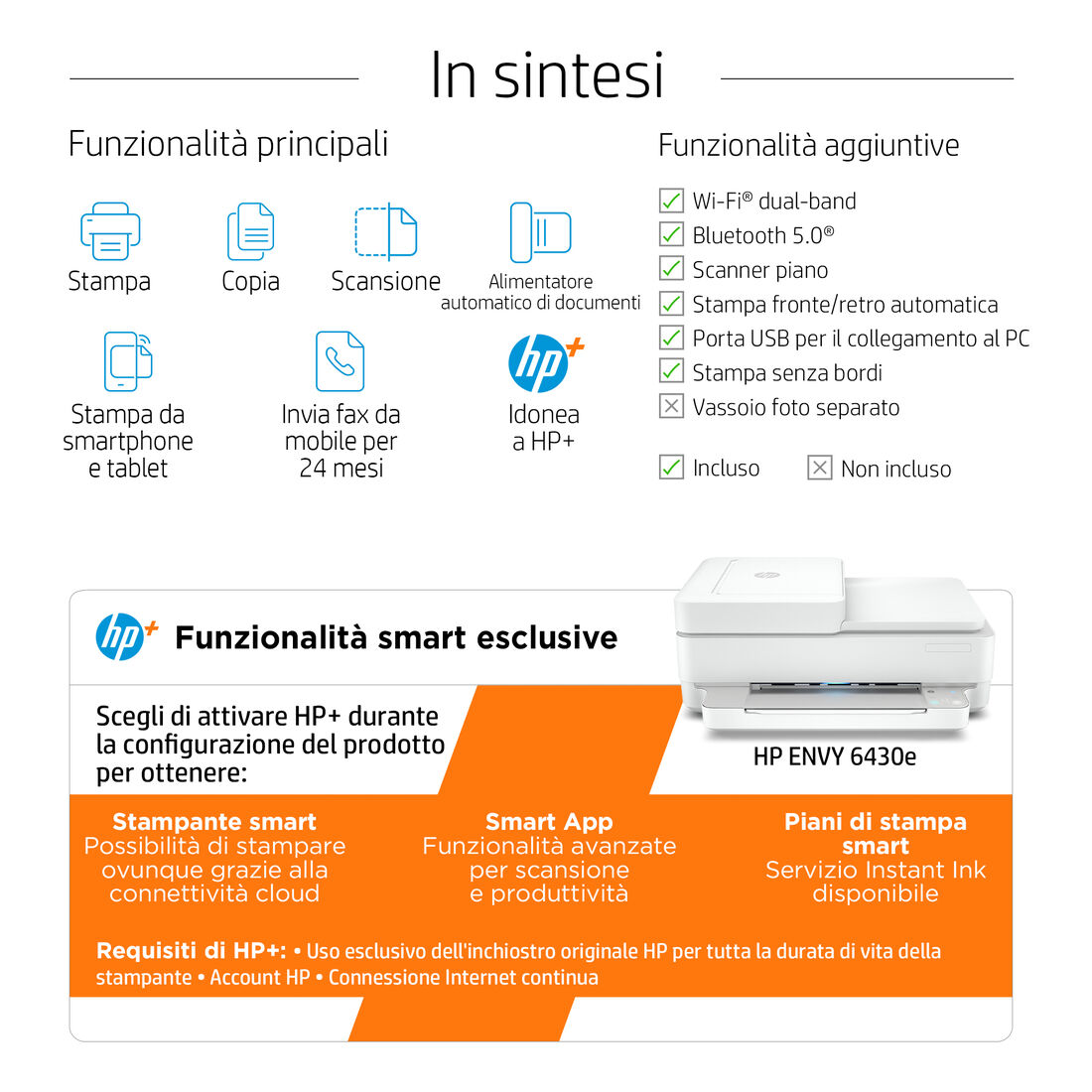 HP ENVY 6430e Wireless All-in-One Colore Stampante, Instant Ink; Fotocopiatrice, scanner