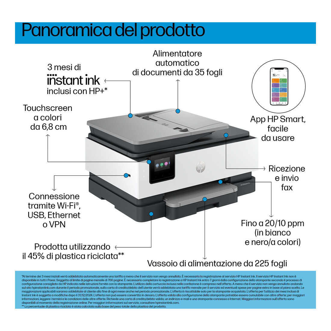 HP OfficeJet Pro 8132e Wireless All-in-One Colore Stampante, Instant Ink; Stampa fronte/retro