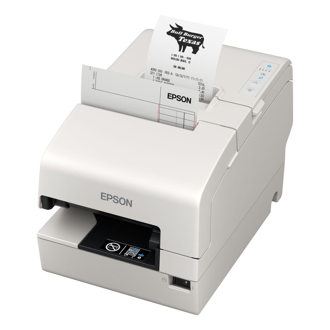 Epson TM-H6000VI. Tecnologia di stampa: Termico, Tipo: Stampante POS, Risoluzione massima: 180 x 180 DPI. Spessore materiale di stampa: 48 – 80, Diametro massimo rullo: 8,3 cm, Larghezza carta supportata: 79.5 mm. Tecnologia di connessione: Con cavo e senza cavo, Connettore USB: USB Type-A / USB Type-B, Tipo interfaccia seriale: RS-232. Velocità trasferimento Ethernet LAN: 10,100 Mbit/s. Codici a barre incorporati: AZTECCODE, CODABAR (NW-7), Code 128 (A/B/C), Code 39, Code 93, Data Matrix, EAN13, EAN8, GS1…, Lingue di descrizione della pagina: ESC/POS