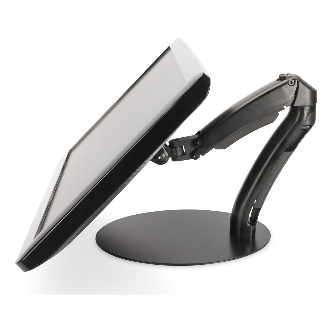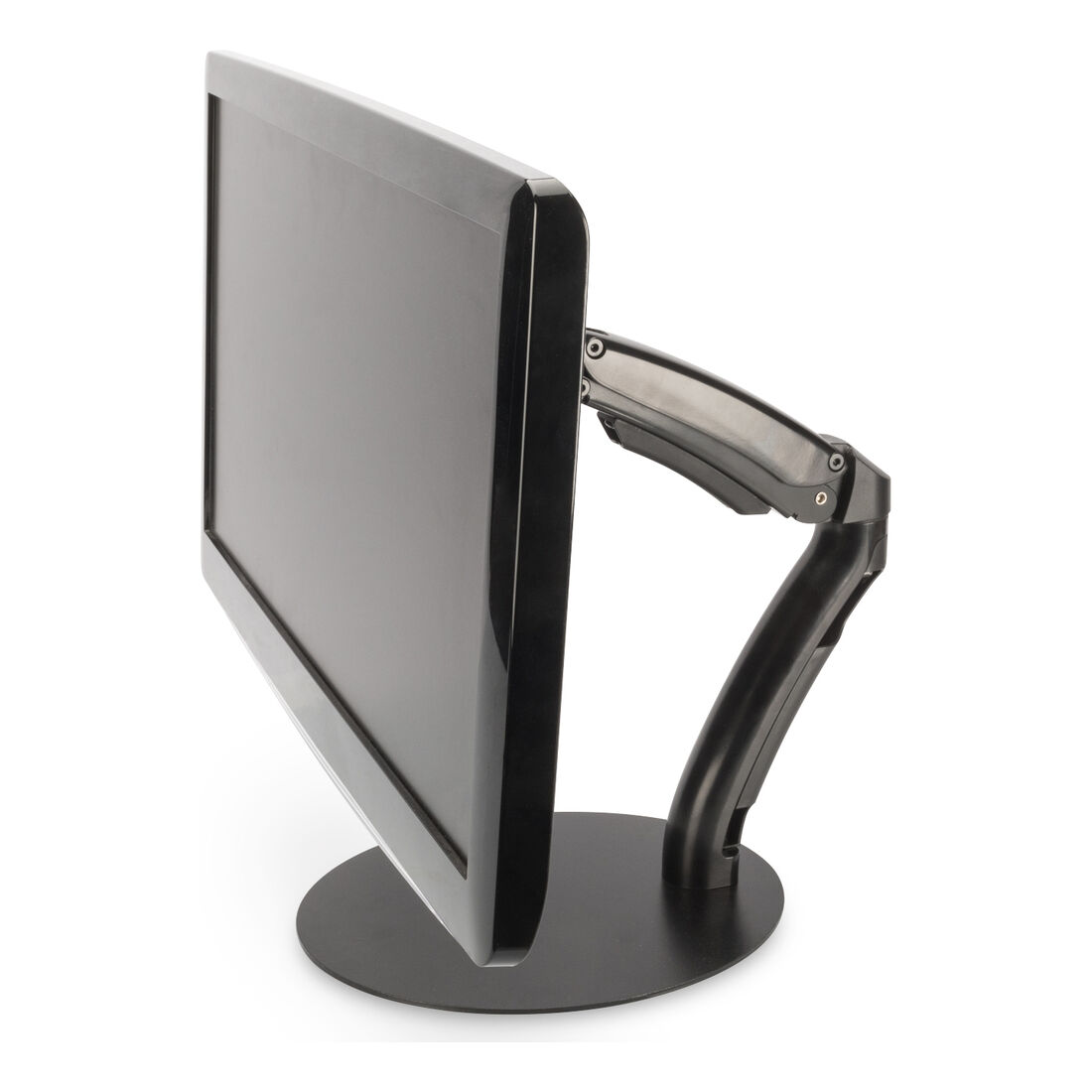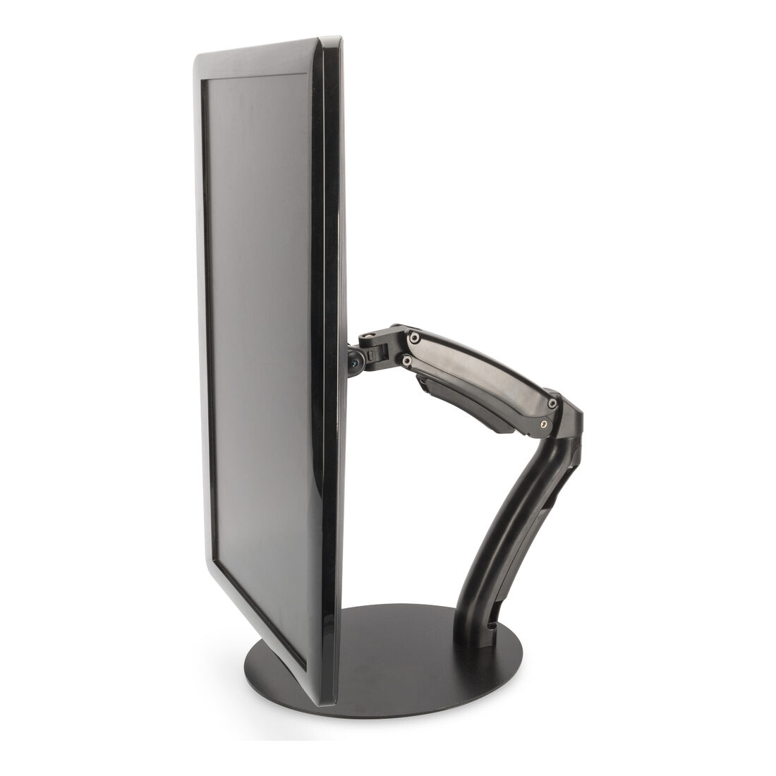 Digitus Supporto per monitor singolo, 27″, 6,5 kg. Montaggio: Libera installazione, Peso massimo (capacità): 6 kg, Capienza minima dimensioni dello schermo: 43,2 cm (17″), Capienza massima dimensioni dello schermo: 68,6 cm (27″), Compatibilità interfaccia di montaggio (min): 75 x 75 mm, Compatibilità interfaccia di montaggio (max): 100 x 100 mm. Regolazione altezza, Inclinazione: -90 – 90°. Colore del prodotto: Nero