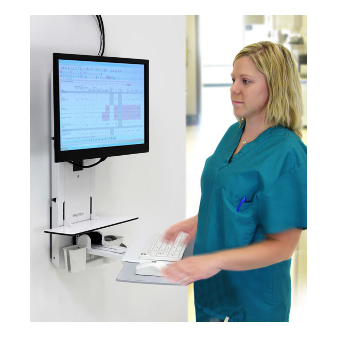 Ergotron 61-080-062. Peso massimo (capacità): 15 kg, Capienza massima dimensioni dello schermo: 61 cm (24″), Compatibilità interfaccia di montaggio (min): 75 x 75 mm, Compatibilità interfaccia di montaggio (max): 100 x 100 mm. Inclinazione: 0 – 10°. Colore del prodotto: Bianco