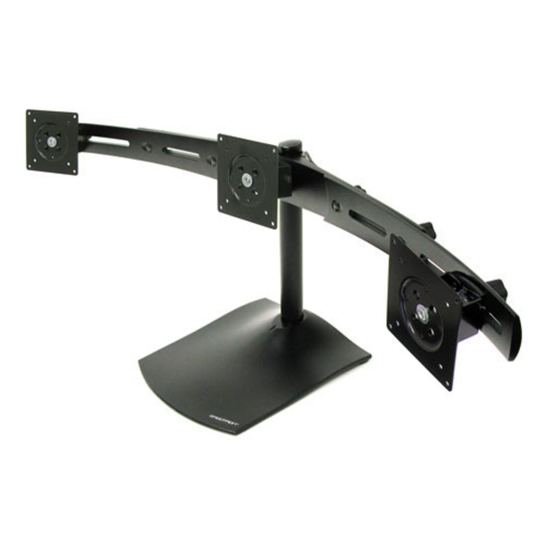 Ergotron DS Series DS100 Triple Monitor Desk Stand. Peso massimo (capacità): 14 kg, Capienza massima dimensioni dello schermo: 53,3 cm (21″), Compatibilità interfaccia di montaggio (min): 75 x 75 mm, Compatibilità interfaccia di montaggio (max): 100 x 100 mm. Colore del prodotto: Nero