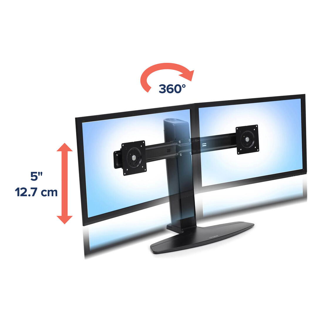 Ergotron Neo Flex Dual Monitor Lift Stand. Peso massimo (capacità): 6,4 kg, Capienza massima dimensioni dello schermo: 62,2 cm (24.5″), Compatibilità interfaccia di montaggio (min): 75 x 75 mm, Compatibilità interfaccia di montaggio (max): 100 x 100 mm. Regolazione altezza. Colore del prodotto: Nero