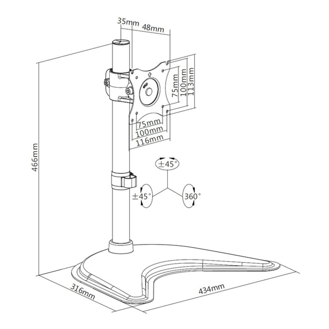 Multibrackets 3323. Montaggio: Libera installazione, Peso massimo (capacità): 10 kg, Capienza minima dimensioni dello schermo: 38,1 cm (15″), Capienza massima dimensioni dello schermo: 68,6 cm (27″), Compatibilità interfaccia di montaggio (min): 75 x 75 mm, Compatibilità interfaccia di montaggio (max): 100 x 100 mm. Regolazione altezza, Angolo di rotazione: -45 – 45°, Inclinazione: -45 – 45°. Colore del prodotto: Nero
