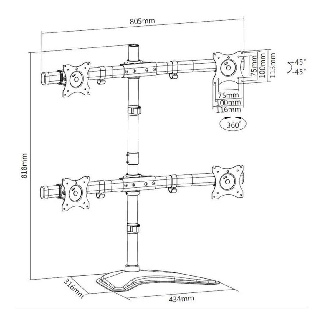 Multibrackets 3347. Montaggio: Libera installazione, Peso massimo (capacità): 32 kg, Capienza minima dimensioni dello schermo: 38,1 cm (15″), Capienza massima dimensioni dello schermo: 68,6 cm (27″), Compatibilità interfaccia di montaggio (min): 75 x 75 mm, Compatibilità interfaccia di montaggio (max): 100 x 100 mm. Regolazione altezza, Angolo di rotazione: -45 – 45°, Inclinazione: -45 – 45°. Colore del prodotto: Nero