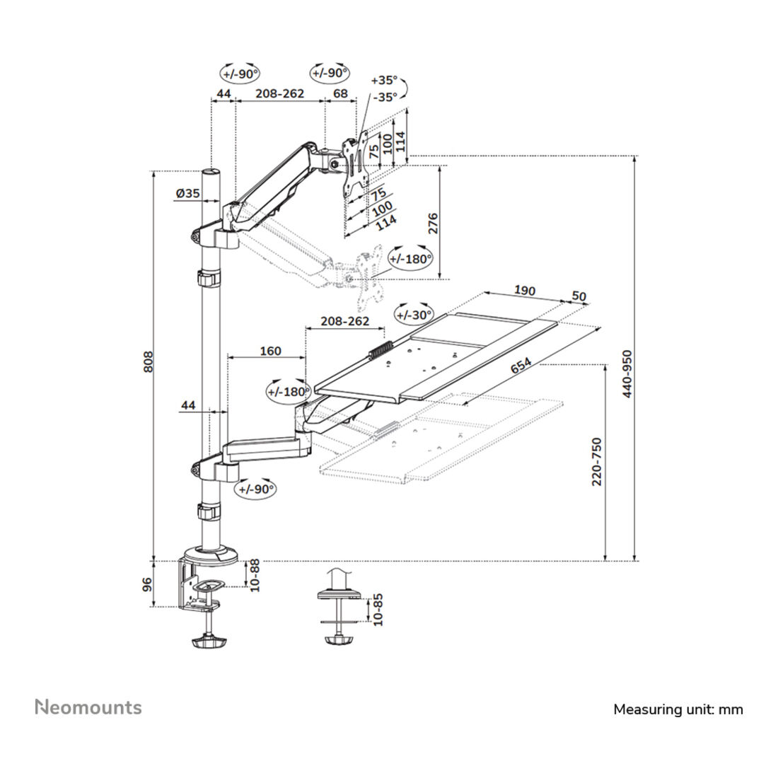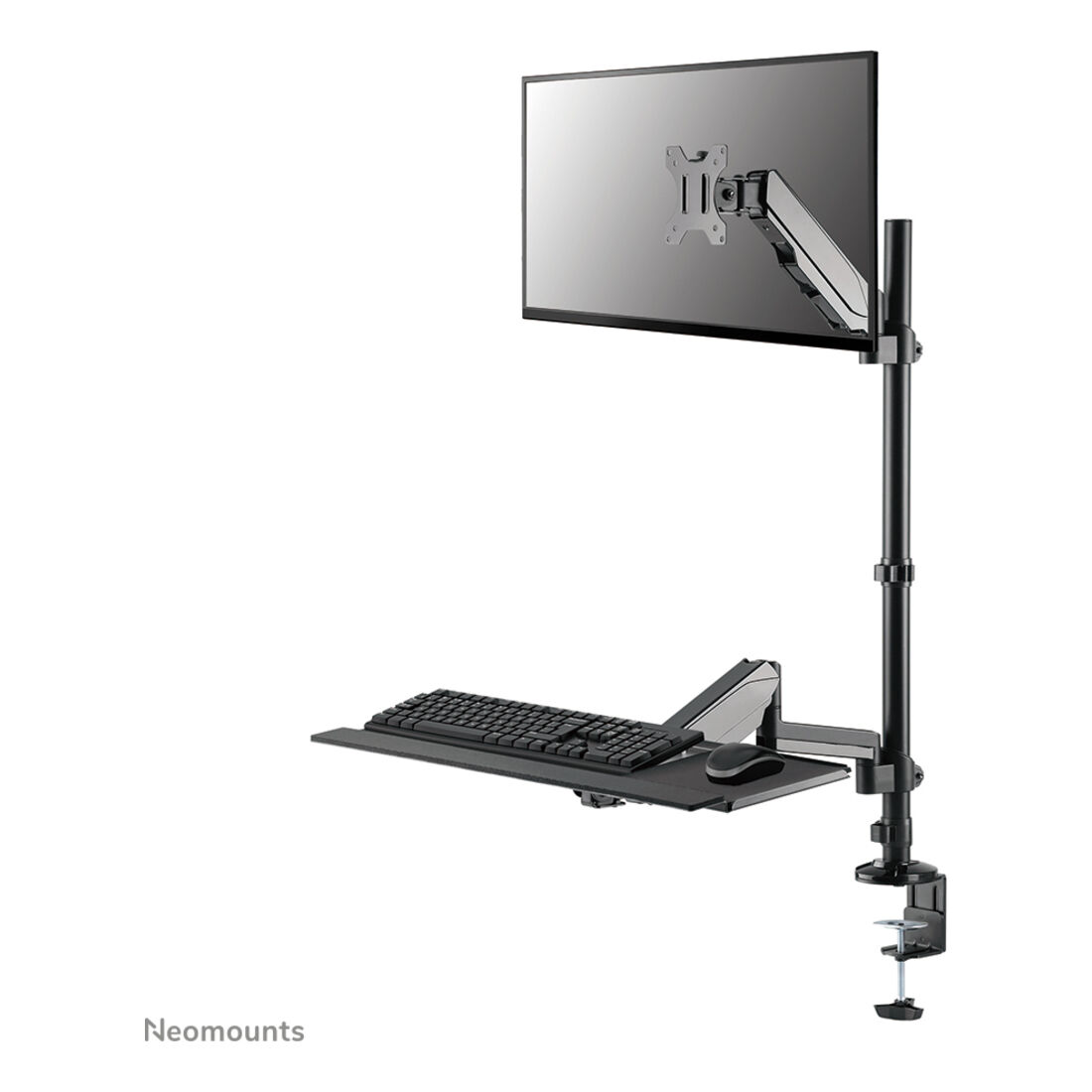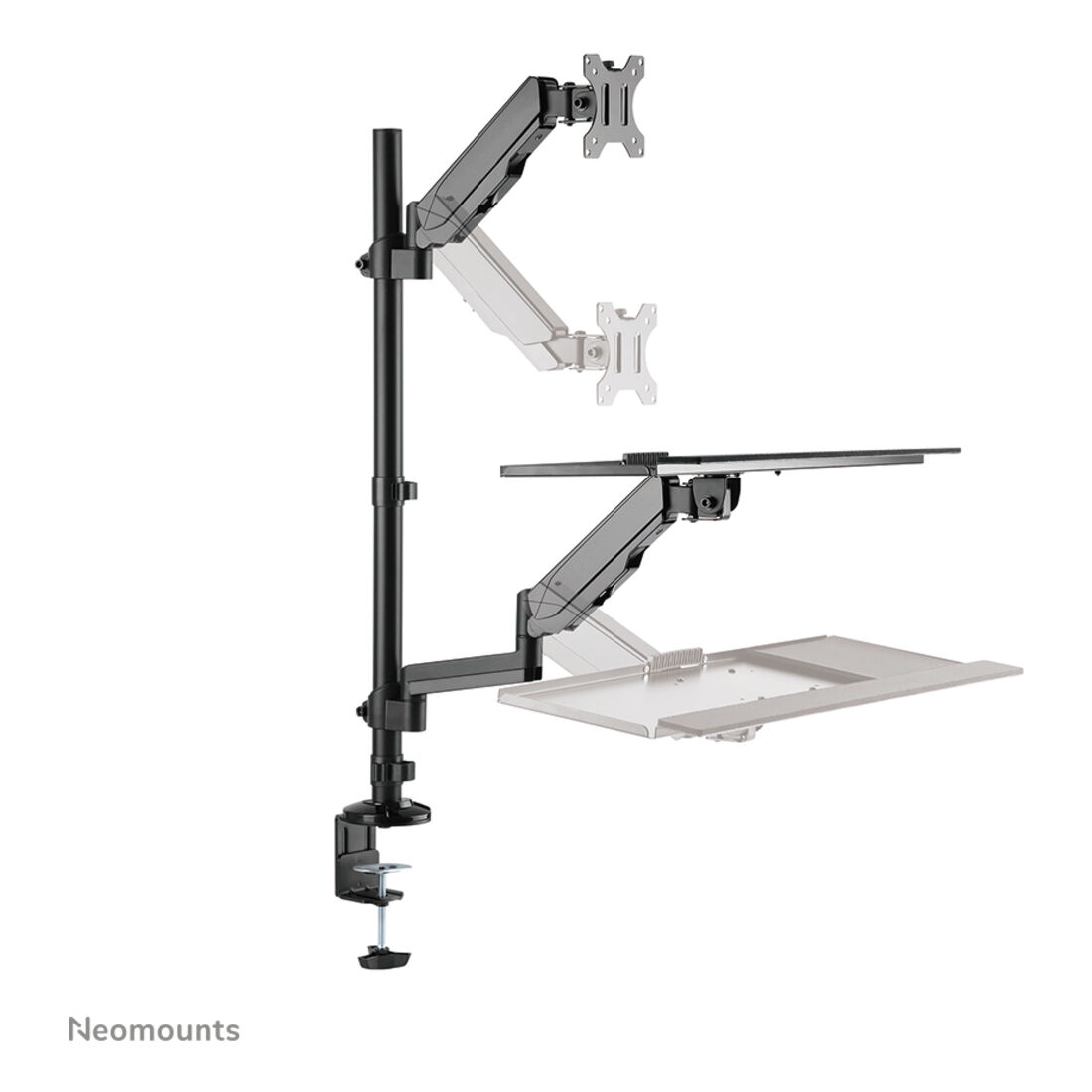 Neomounts DS90-325BL1 Postazione di lavoro in piedi da tavolo 17-32″ – molla a gas. Montaggio: Morsetto/occhiello, Peso massimo (capacità): 9 kg, Capienza minima dimensioni dello schermo: 43,2 cm (17″), Capienza massima dimensioni dello schermo: 81,3 cm (32″), Compatibilità interfaccia di montaggio (min): 75 x 75 mm, Compatibilità interfaccia di montaggio (max): 100 x 100 mm. Regolazione altezza, Angolo di rotazione: -90 – 90°, Inclinazione: -35 – 35°. Colore del prodotto: Nero