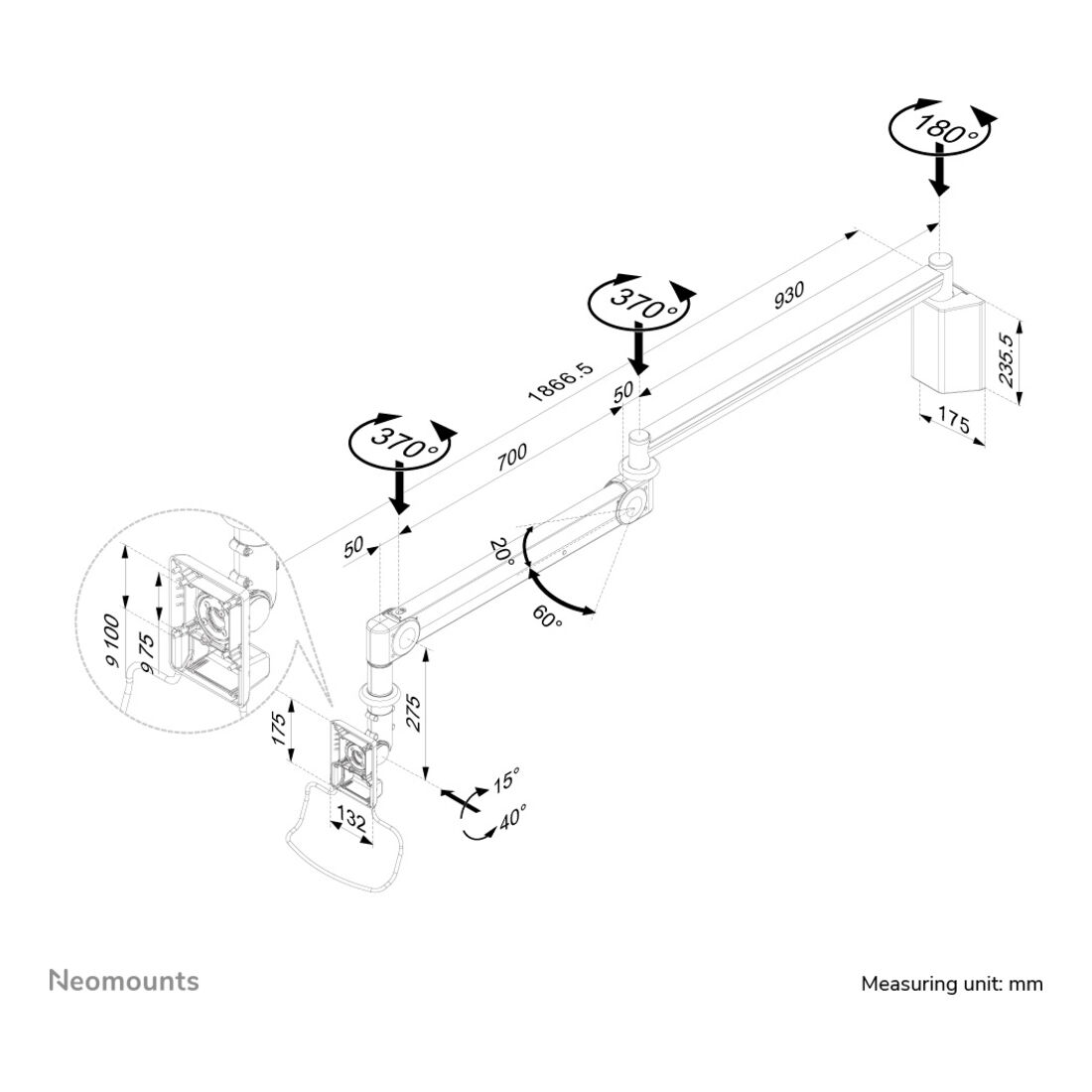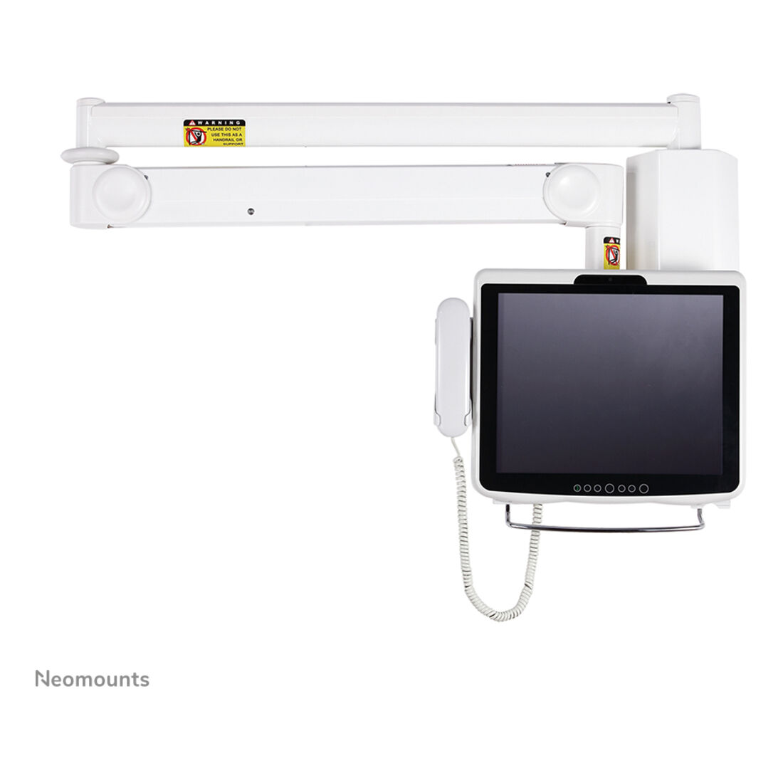 Neomounts FPMA-HAW100HC Supporto monitor a parete tipo medicale 10-32″ – alt. 0-170 cm – molla a gas. Peso massimo (capacità): 12 kg, Capienza minima dimensioni dello schermo: 25,4 cm (10″), Capienza massima dimensioni dello schermo: 81,3 cm (32″), Compatibilità interfaccia di montaggio (min): 75 x 75 mm, Compatibilità interfaccia di montaggio (max): 100 x 100 mm. Regolazione altezza, Angolo di rotazione: 0 – 270°, Inclinazione: 0 – 55°. Colore del prodotto: Bianco