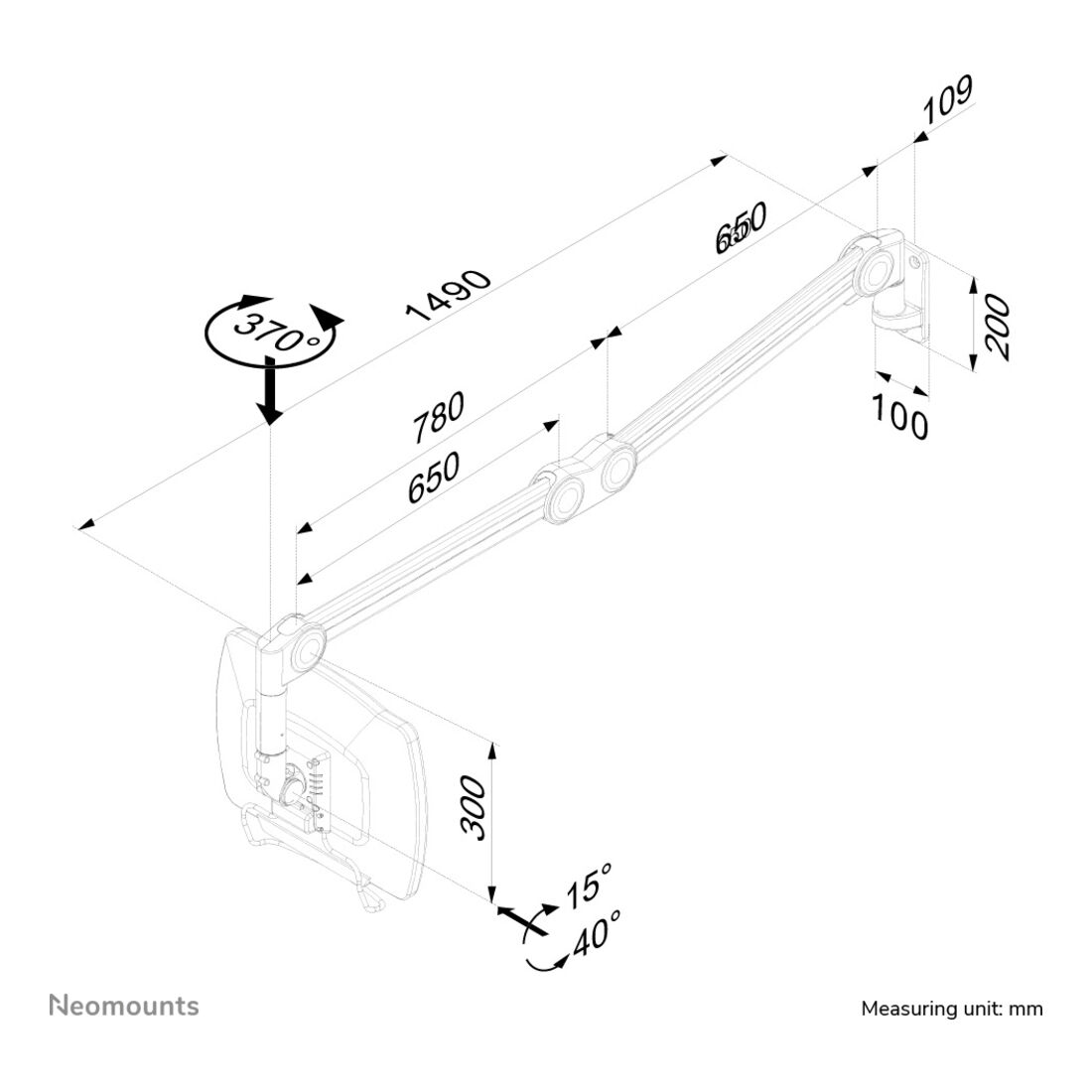 Neomounts FPMA-HAW200 Supporto monitor a parete tipo medicale 10-27″ – alt. 0-149 cm – molla a gas. Peso massimo (capacità): 7 kg, Capienza minima dimensioni dello schermo: 25,4 cm (10″), Capienza massima dimensioni dello schermo: 68,6 cm (27″), Compatibilità interfaccia di montaggio (min): 75 x 75 mm, Compatibilità interfaccia di montaggio (max): 100 x 100 mm. Regolazione altezza, Inclinazione: 0 – 55°. Colore del prodotto: Bianco