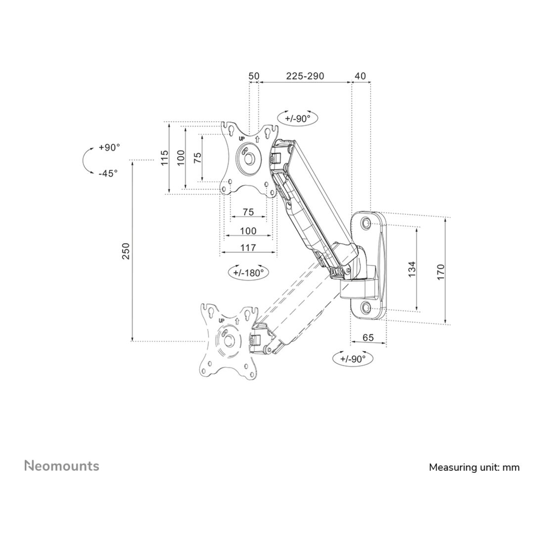 Neomounts WL70-440BL11 Supporto monitor/TV a parete – 17-32″ – 2-9 kg – VESA 75×75-100×100 – prof. 9-38 cm – molla a gas – mobilità completa – nero
