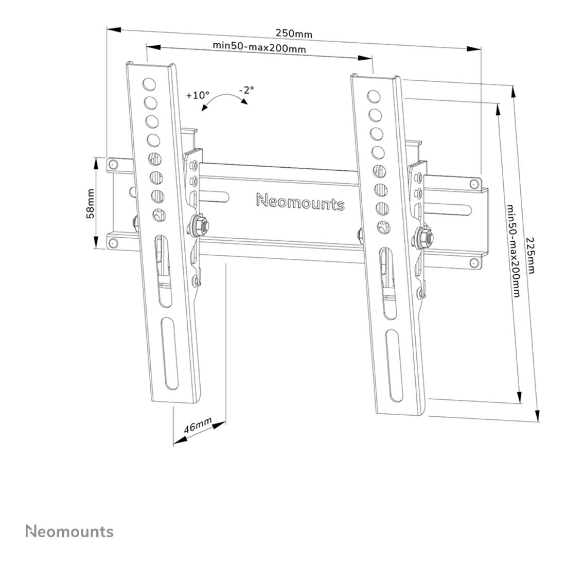 Neomounts WL35-350BL12 Supporto TV a parete 24-55″ – inclinabile – bloccabile – montaggio facile. Peso massimo (capacità): 25 kg, Capienza minima dimensioni dello schermo: 61 cm (24″), Capienza massima dimensioni dello schermo: 139,7 cm (55″), Compatibilità interfaccia di montaggio (min): 50 x 50 mm, Compatibilità interfaccia di montaggio (max): 200 x 200 mm. Inclinazione: -2 – 10°. Colore del prodotto: Nero