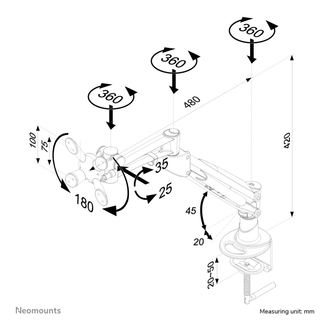 Neomounts FPMA-D940 Braccio per monitor 10-30″ – molla a gas. Montaggio: Morsa, Peso massimo (capacità): 9 kg, Capienza minima dimensioni dello schermo: 25,4 cm (10″), Capienza massima dimensioni dello schermo: 76,2 cm (30″), Compatibilità interfaccia di montaggio (min): 75 x 75 mm, Compatibilità interfaccia di montaggio (max): 100 x 100 mm. Regolazione altezza, Inclinazione: 0 – 60°. Colore del prodotto: Argento