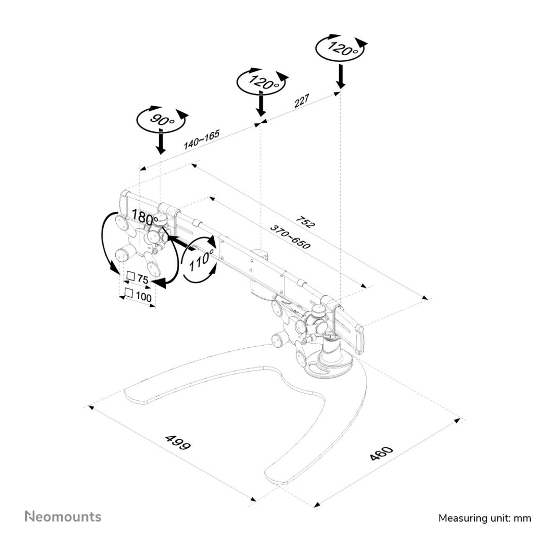 Neomounts FPMA-D940DD Supporto per monitor 10-24″ – molla a gas. Montaggio: Libera installazione, Capienza minima dimensioni dello schermo: 25,4 cm (10″), Capienza massima dimensioni dello schermo: 61 cm (24″), Compatibilità interfaccia di montaggio (min): 75 x 75 mm, Compatibilità interfaccia di montaggio (max): 100 x 100 mm. Regolazione altezza, Inclinazione: 0 – 60°. Colore del prodotto: Argento