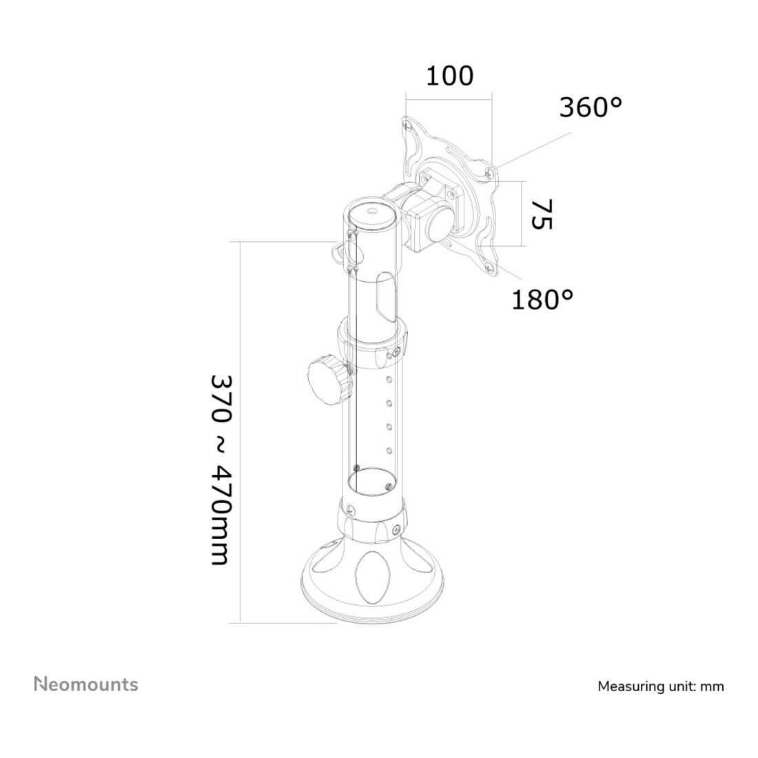 Neomounts FPMA-D025BLACK Braccio per monitor 10-30″ – inclinabile. Montaggio: Occhiello, Peso massimo (capacità): 12 kg, Capienza minima dimensioni dello schermo: 25,4 cm (10″), Capienza massima dimensioni dello schermo: 76,2 cm (30″), Compatibilità interfaccia di montaggio (min): 75 x 75 mm, Compatibilità interfaccia di montaggio (max): 100 x 100 mm. Regolazione altezza, Inclinazione: 0 – 180°. Colore del prodotto: Nero