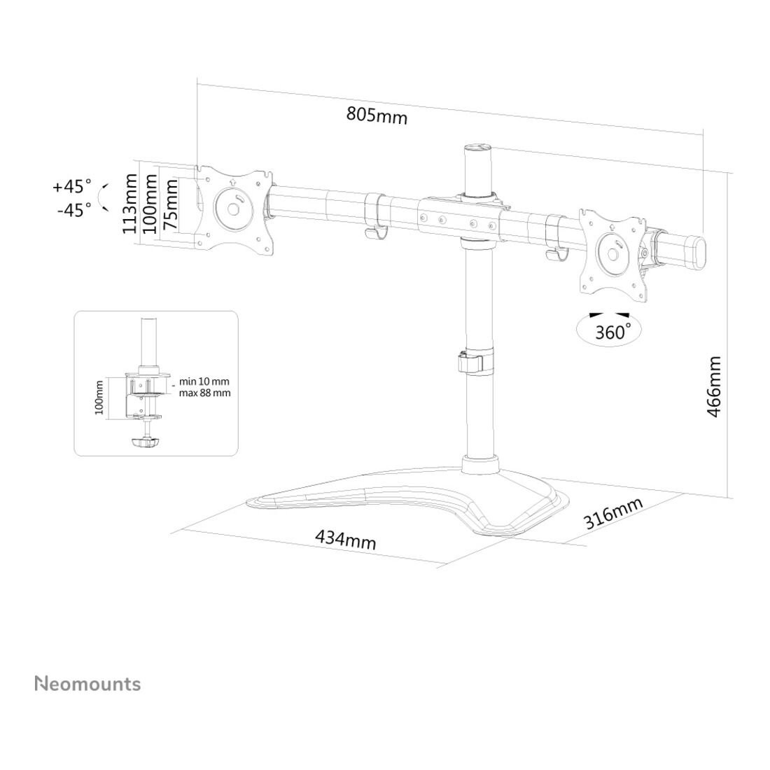 Neomounts NM-D335DBLACK Supporto per monitor 2 schermi – 10-27″ – 0-8 kg/schermo – nero