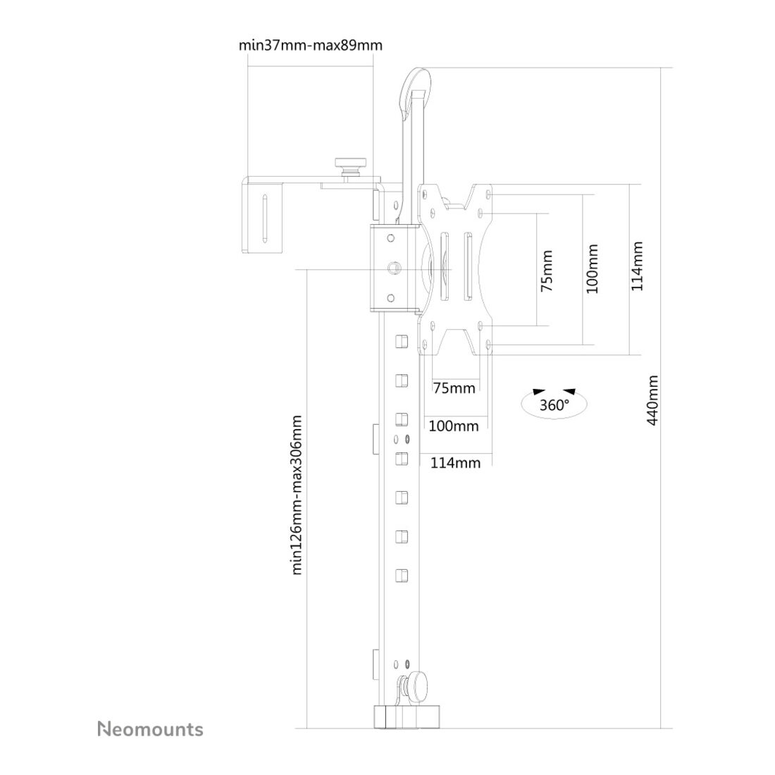 Neomounts FPMA-CH100BLACK Braccio per monitor 10-30″ – per la parete di separazione – ruotabile. Montaggio: Morsa, Peso massimo (capacità): 8 kg, Capienza minima dimensioni dello schermo: 25,4 cm (10″), Capienza massima dimensioni dello schermo: 76,2 cm (30″), Compatibilità interfaccia di montaggio (min): 75 x 75 mm, Compatibilità interfaccia di montaggio (max): 100 x 100 mm. Regolazione altezza. Colore del prodotto: Nero