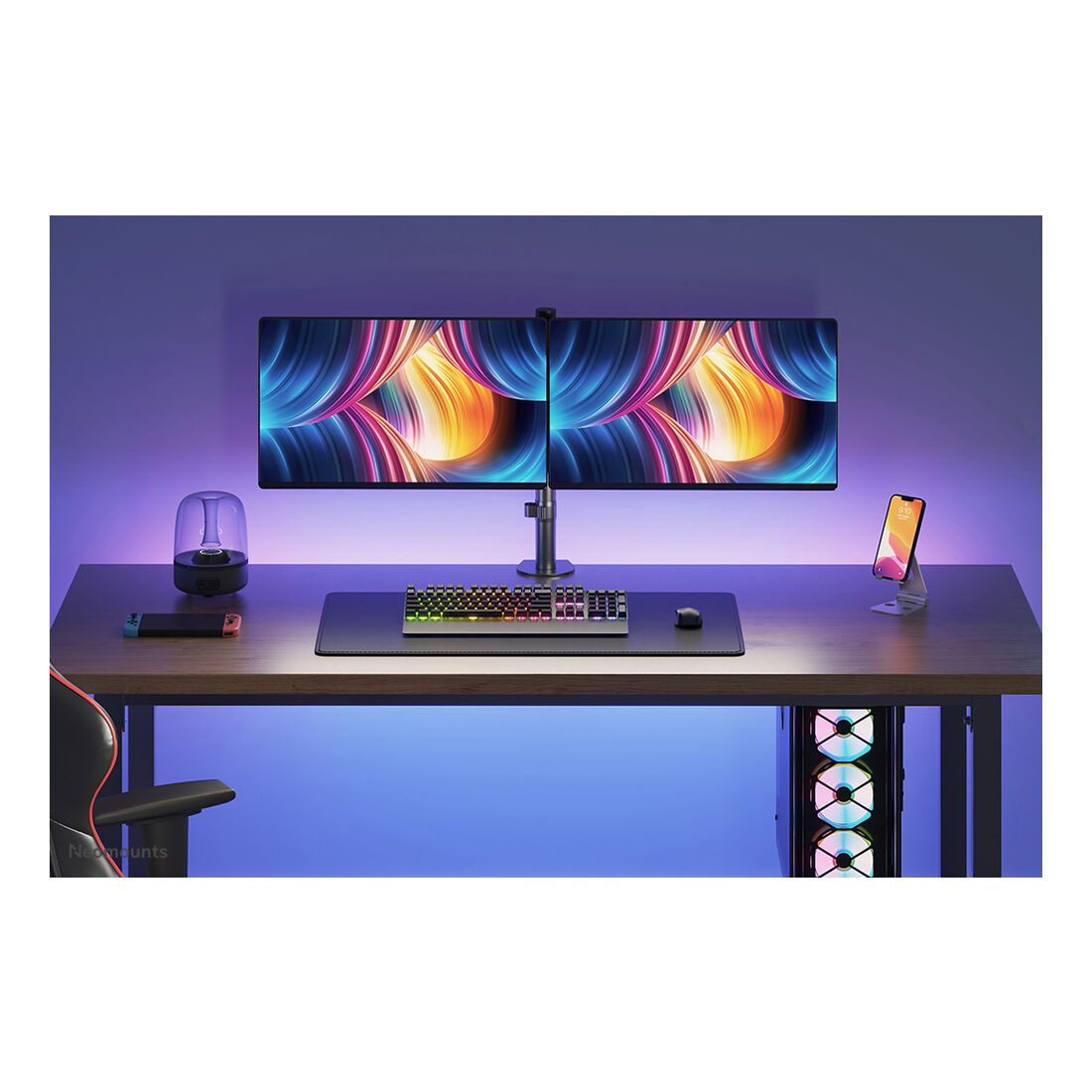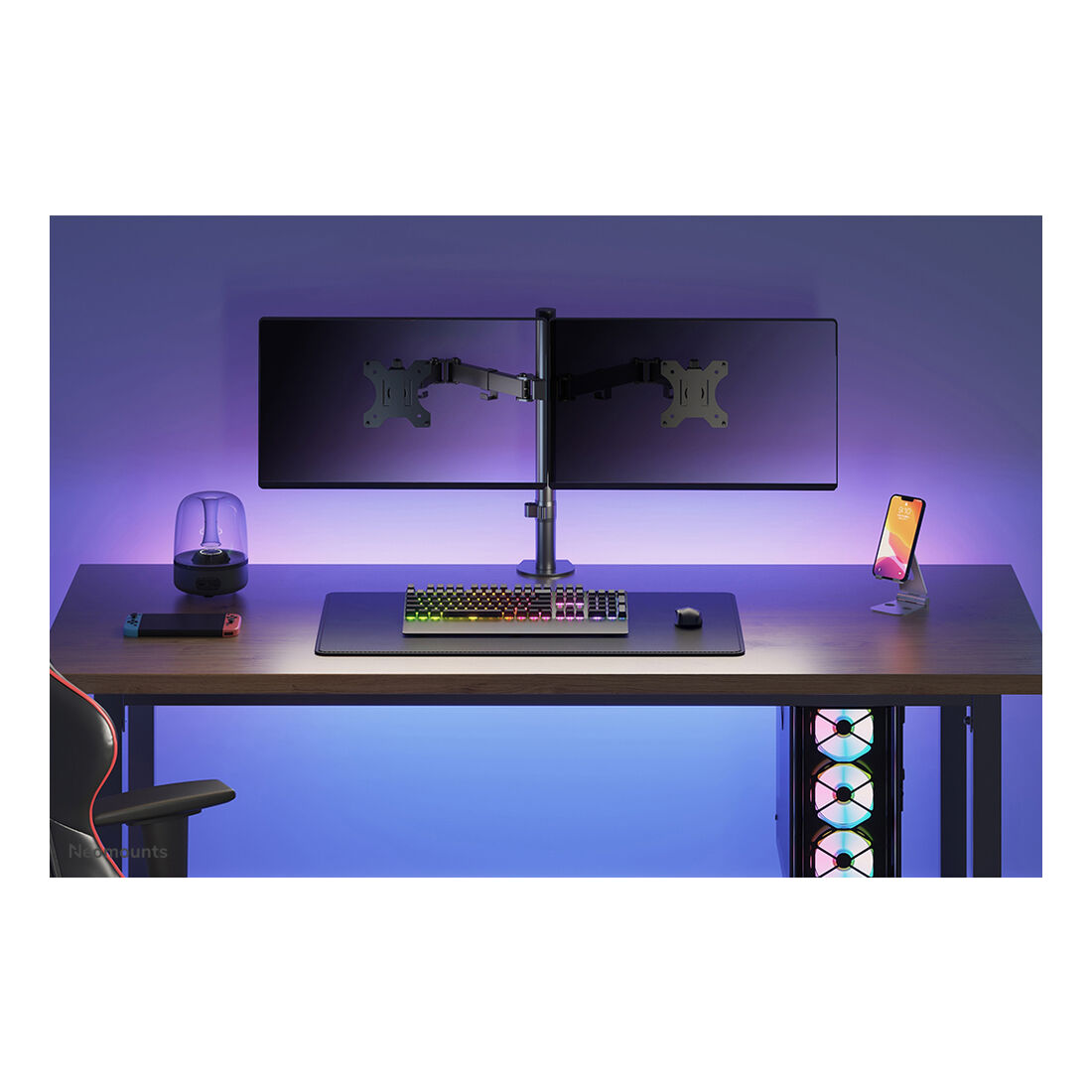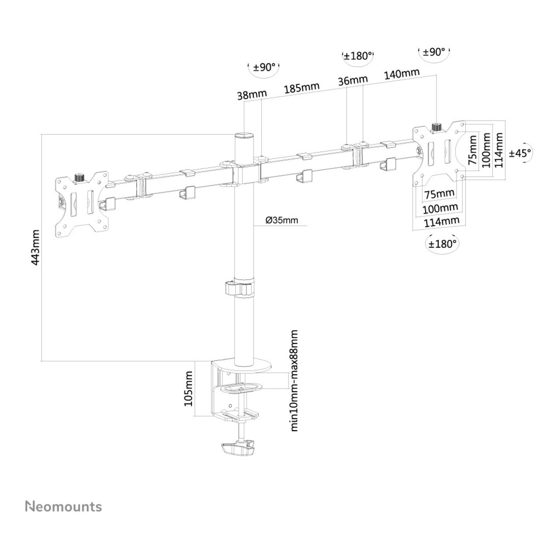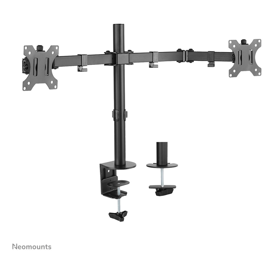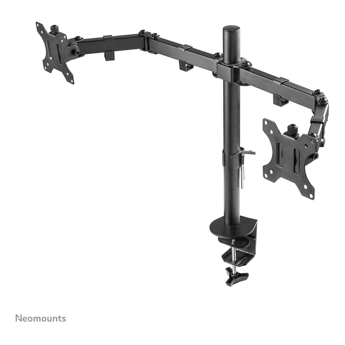 Neomounts FPMA-D550DBLACK Braccio per monitor 10-32″. Montaggio: Morsetto/occhiello, Capienza minima dimensioni dello schermo: 25,4 cm (10″), Capienza massima dimensioni dello schermo: 81,3 cm (32″), Compatibilità interfaccia di montaggio (min): 75 x 75 mm, Compatibilità interfaccia di montaggio (max): 100 x 100 mm. Regolazione altezza, Inclinazione: 0 – 90°. Colore del prodotto: Nero