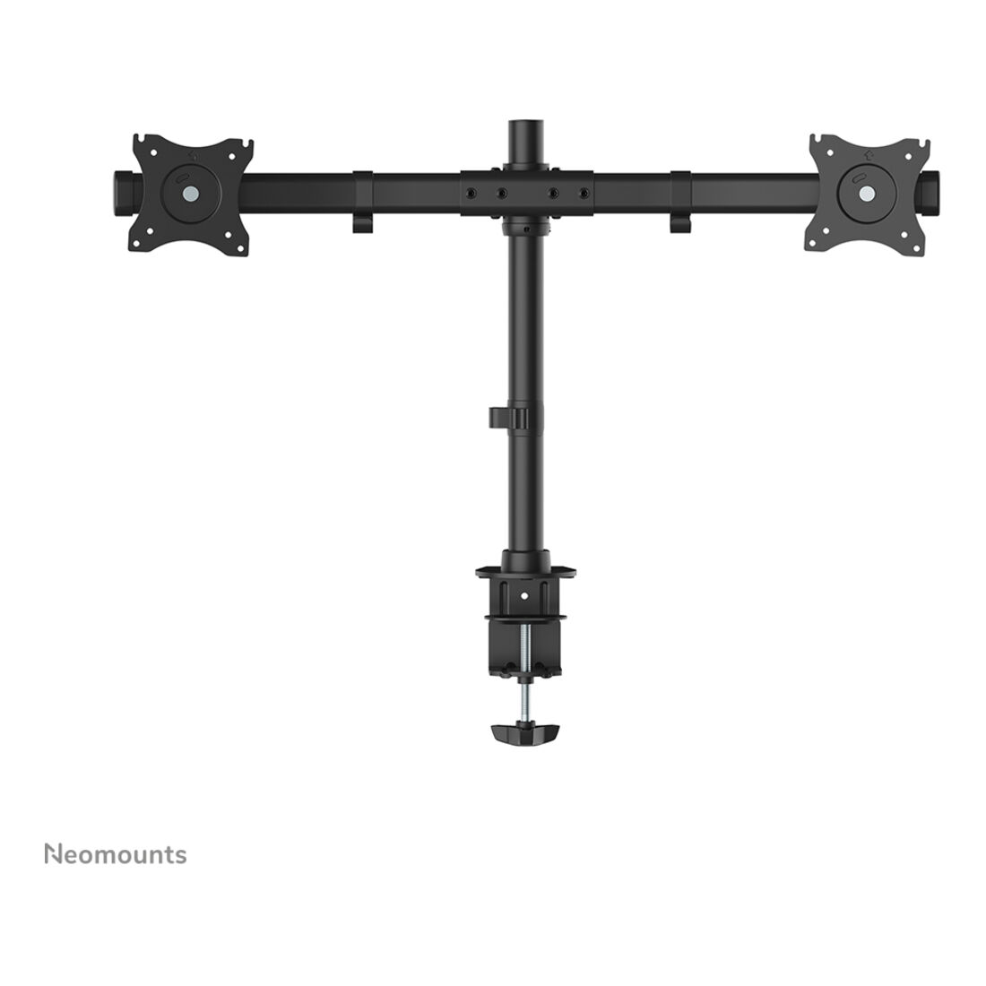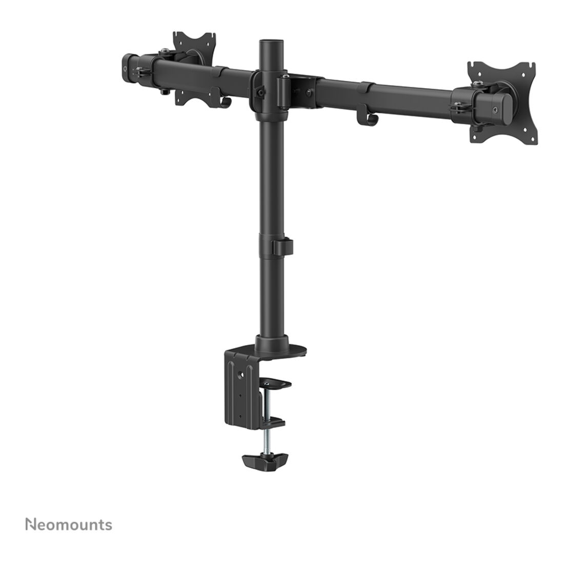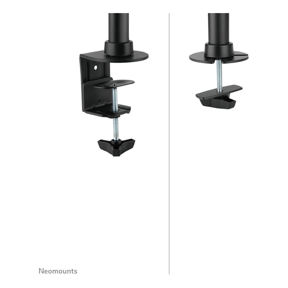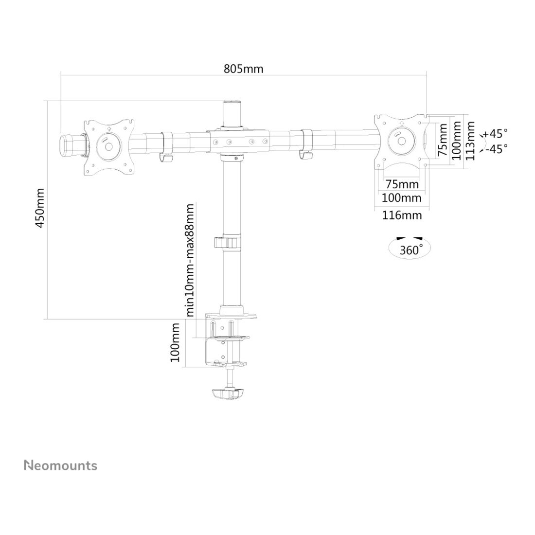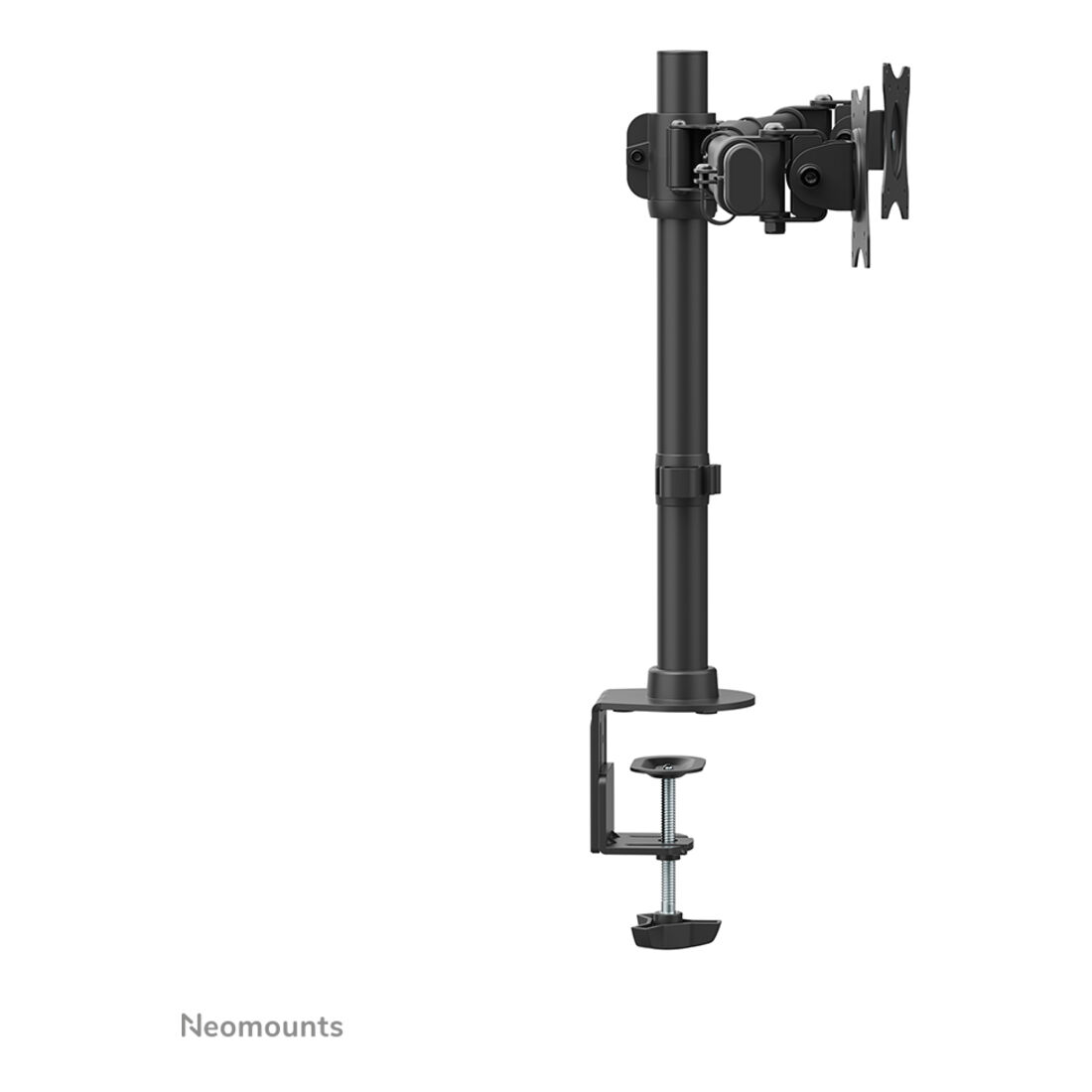 Neomounts FPMA-DCB100DBLACK Braccio per monitor 10-27″. Montaggio: Morsetto/occhiello, Capienza minima dimensioni dello schermo: 25,4 cm (10″), Capienza massima dimensioni dello schermo: 68,6 cm (27″), Compatibilità interfaccia di montaggio (min): 75 x 75 mm, Compatibilità interfaccia di montaggio (max): 100 x 100 mm. Regolazione altezza, Angolo di rotazione: -15 – 15°, Inclinazione: -45 – 45°. Colore del prodotto: Nero