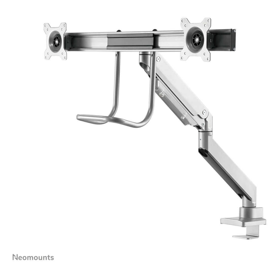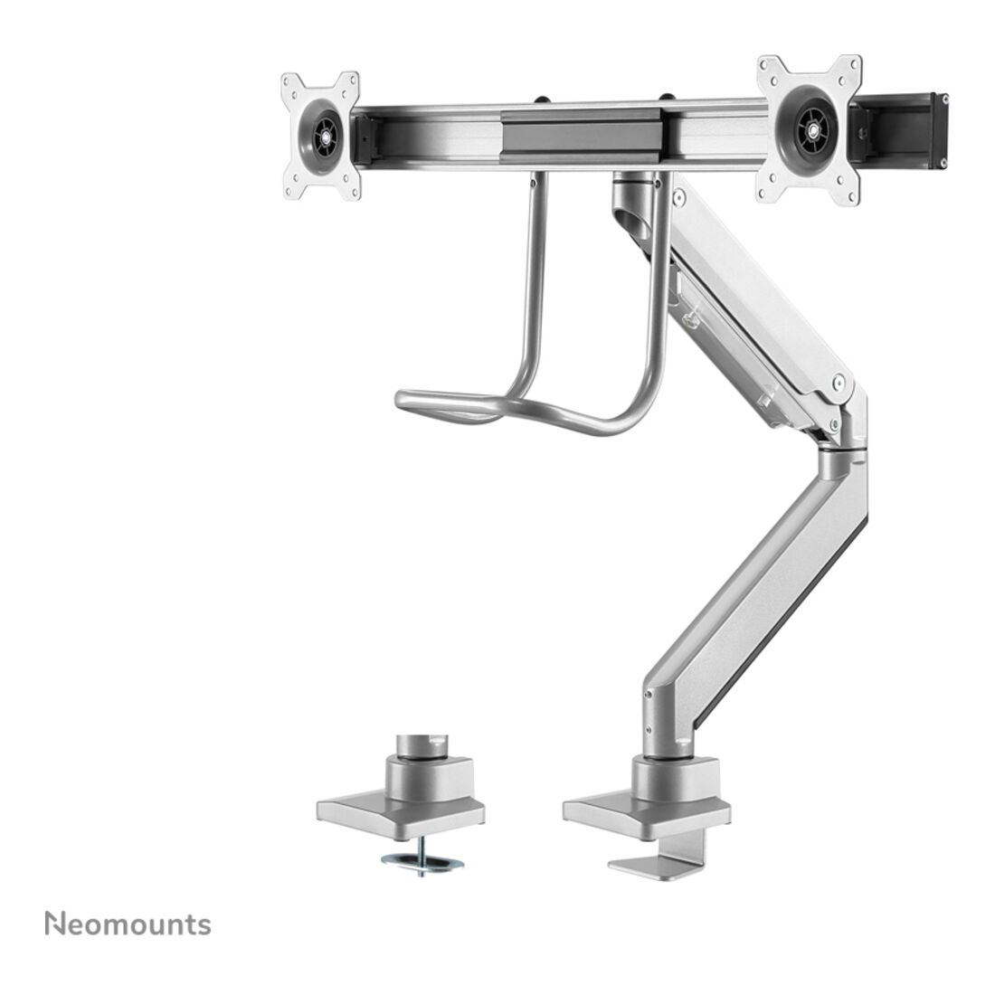 Neomounts NM-D775DXSILVER Braccio per monitor 10-32″ – molla a gas – Topfix – 180°-stop. Montaggio: Morsetto/occhiello, Capienza minima dimensioni dello schermo: 25,4 cm (10″), Capienza massima dimensioni dello schermo: 81,3 cm (32″), Compatibilità interfaccia di montaggio (min): 75 x 75 mm, Compatibilità interfaccia di montaggio (max): 100 x 100 mm. Regolazione altezza, Angolo di rotazione: -90 – 90°, Inclinazione: -10 – 10°. Colore del prodotto: Argento