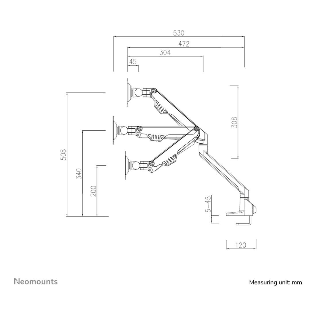Neomounts FPMA-D750DBLACK2 Braccio per monitor 10-32″ – molla a gas – Topfix – 180°-stop. Montaggio: Morsetto/occhiello, Capienza minima dimensioni dello schermo: 25,4 cm (10″), Capienza massima dimensioni dello schermo: 81,3 cm (32″), Compatibilità interfaccia di montaggio (min): 75 x 75 mm, Compatibilità interfaccia di montaggio (max): 100 x 100 mm. Regolazione altezza, Inclinazione: -50 – 120°. Colore del prodotto: Nero