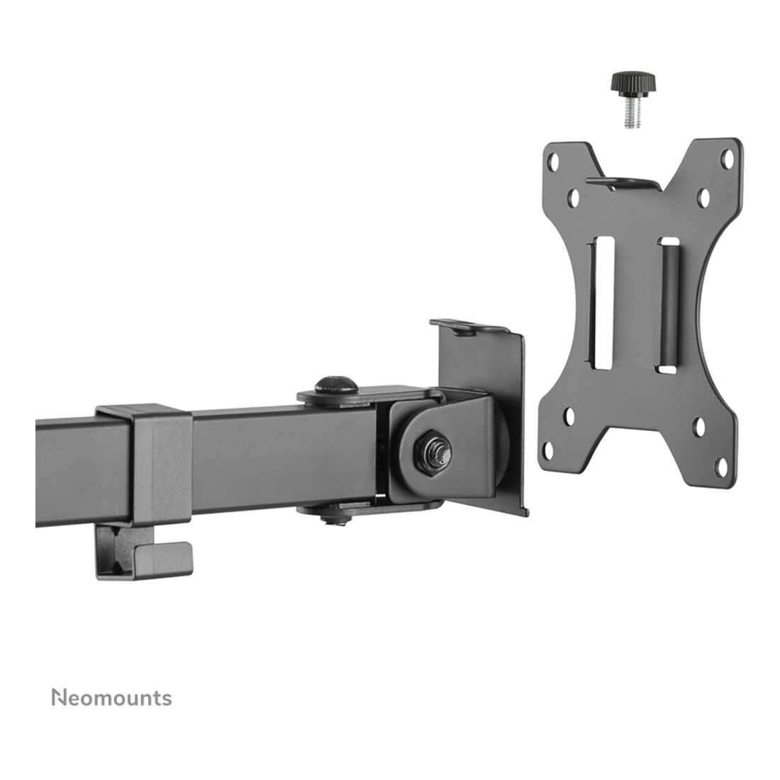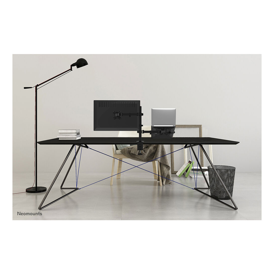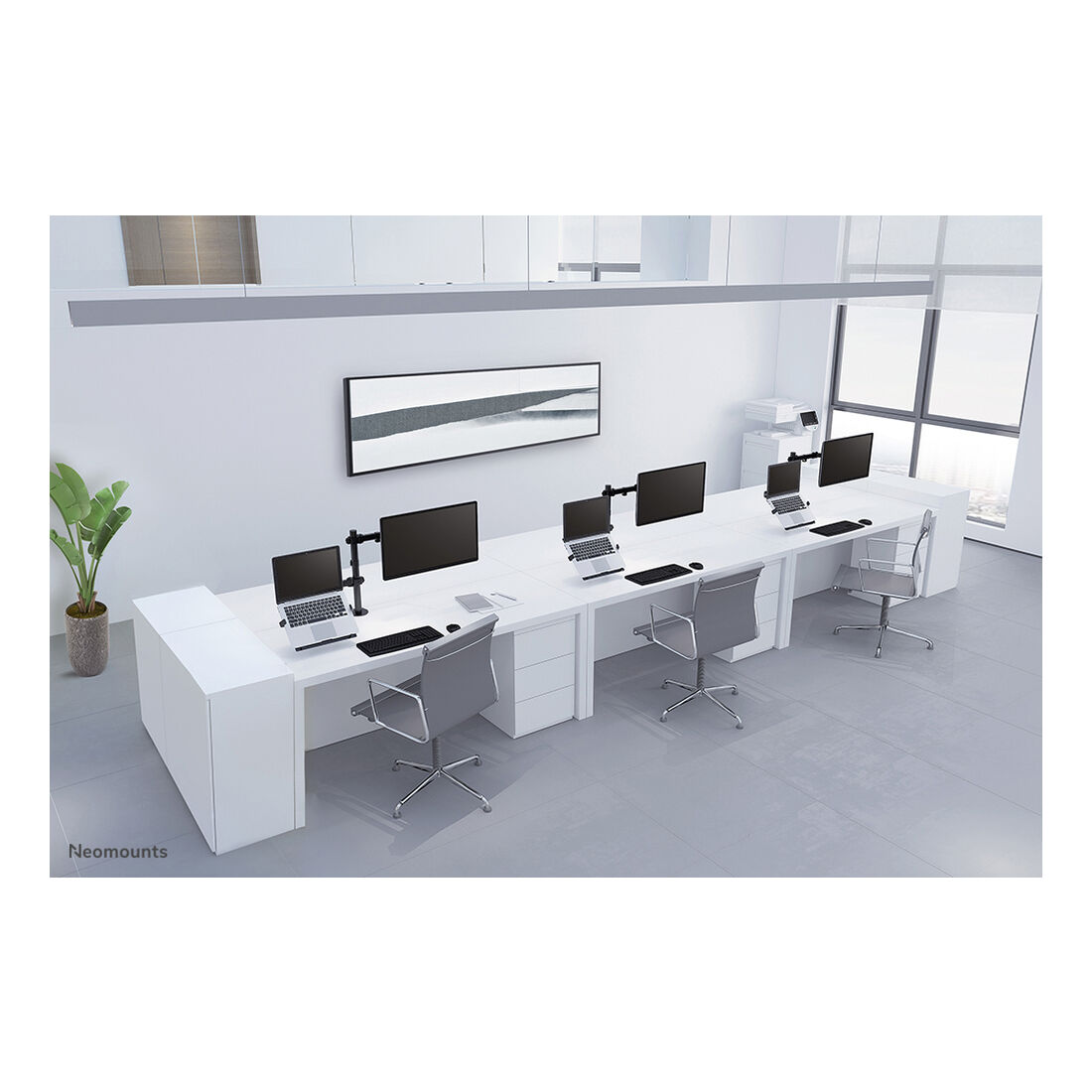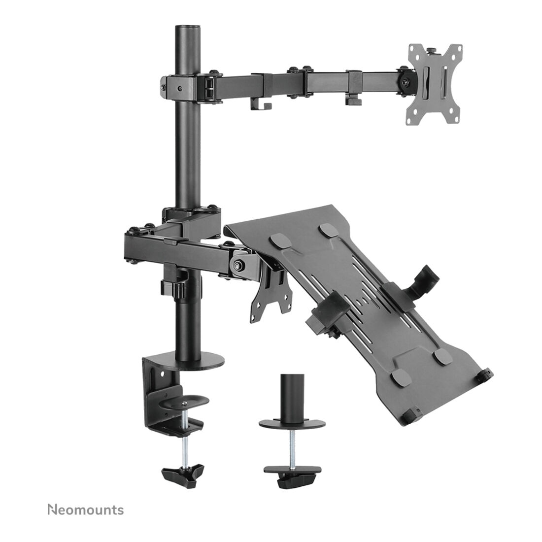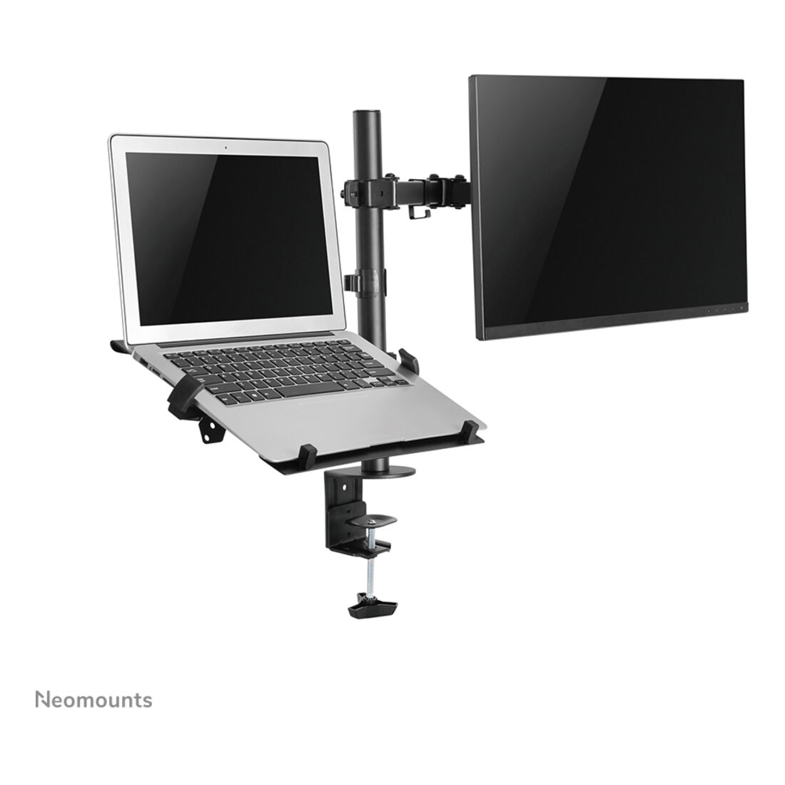Neomounts FPMA-D550NOTEBOOK Braccio per monitor con supporto per laptop 10-32″. Montaggio: Morsetto/occhiello, Peso massimo (capacità): 8 kg, Capienza minima dimensioni dello schermo: 25,4 cm (10″), Capienza massima dimensioni dello schermo: 81,3 cm (32″), Compatibilità interfaccia di montaggio (min): 75 x 75 mm, Compatibilità interfaccia di montaggio (max): 100 x 100 mm. Regolazione altezza, Inclinazione: 0 – 90°. Colore del prodotto: Nero