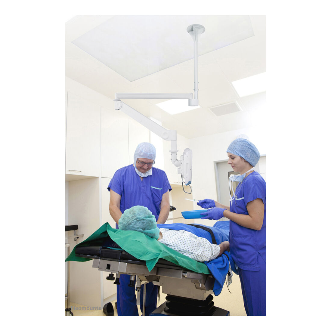 Neomounts FPMA-HAC100HC Supporto monitor a soffitto tipo medicale 10-32″ – alt. 0-170 cm – molla a gas. Peso massimo (capacità): 12 kg, Capienza minima dimensioni dello schermo: 25,4 cm (10″), Capienza massima dimensioni dello schermo: 81,3 cm (32″), Compatibilità interfaccia di montaggio (min): 75 x 75 mm, Compatibilità interfaccia di montaggio (max): 100 x 100 mm. Regolazione altezza, Angolo di rotazione: 0 – 270°, Inclinazione: 0 – 55°. Colore del prodotto: Bianco