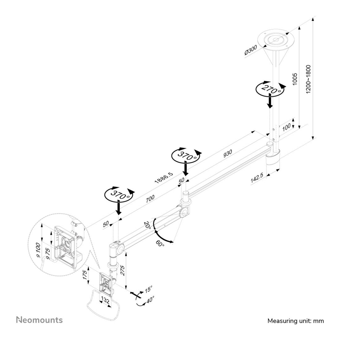 Neomounts FPMA-HAC100 Supporto monitor a soffitto tipo medicale 10-24″ – alt. 0-170 cm – molla a gas. Peso massimo (capacità): 6 kg, Capienza minima dimensioni dello schermo: 25,4 cm (10″), Capienza massima dimensioni dello schermo: 61 cm (24″), Compatibilità interfaccia di montaggio (min): 75 x 75 mm, Compatibilità interfaccia di montaggio (max): 100 x 100 mm. Regolazione altezza, Inclinazione: 0 – 55°. Colore del prodotto: Bianco