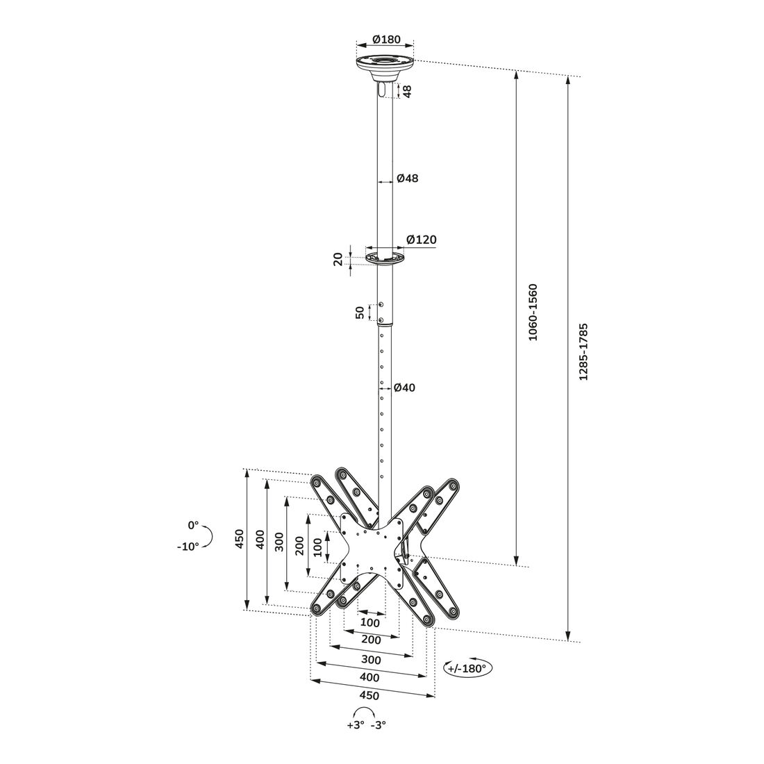 Neomounts FPMA-C340DBLACK Supporto a soffitto per doppio monitor/TV 32-75″ – alt. 106-156 cm. Capienza minima dimensioni dello schermo: 81,3 cm (32″), Capienza massima dimensioni dello schermo: 190,5 cm (75″), Compatibilità interfaccia di montaggio (min): 100 x 100 mm, Compatibilità interfaccia di montaggio (max): 400 x 400 mm. Regolazione altezza, Inclinazione: 0 – 10°. Colore del prodotto: Nero