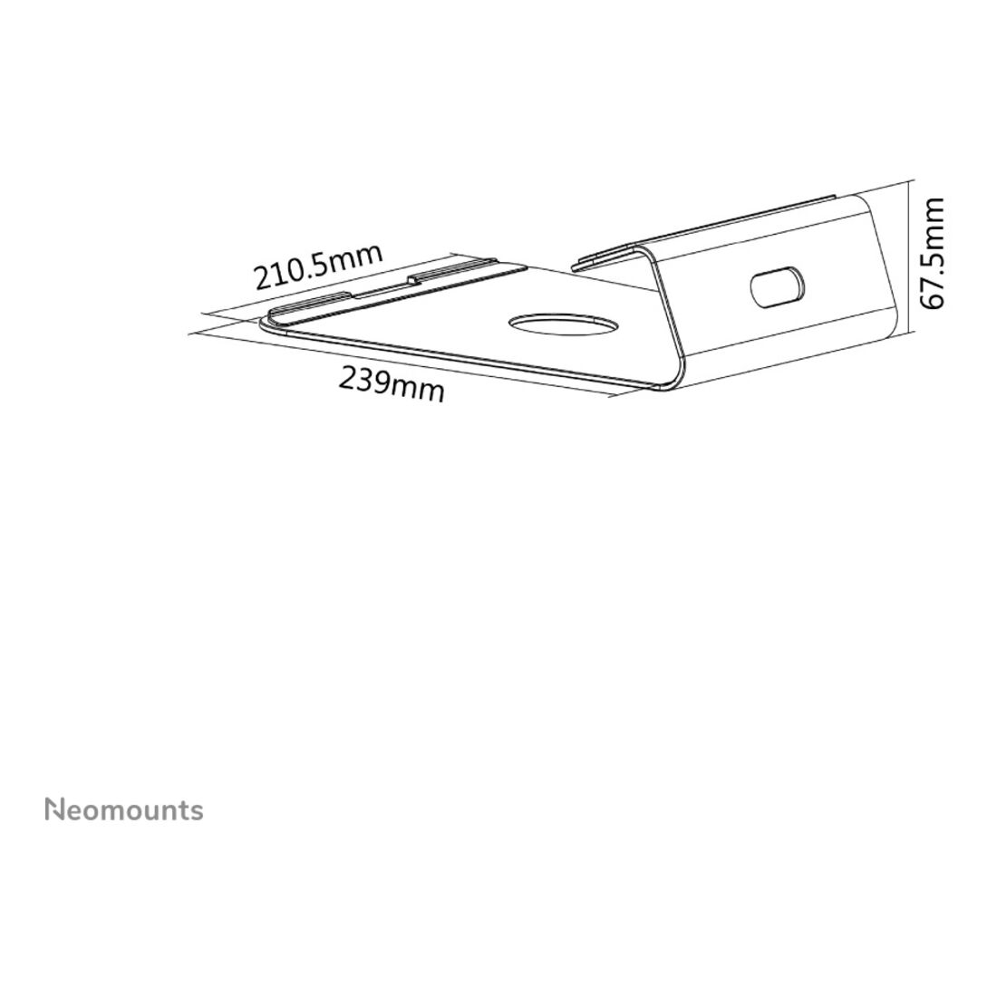 Neomounts NSLS025 Supporto per laptop 10-17″ – universale. Tipo di prodotto: Supporto per computer portatile, Colore del prodotto: Argento, Materiali: Alluminio. Range di regolazione altezza: 0 – 68 mm, range di aggiustamento altezza: 0 – 210 mm, Range di regolazione della profondità: 0 – 240 mm. Larghezza: 210 mm, Profondità: 240 mm, Altezza: 68 mm. Larghezza imballo: 242 mm, Profondità imballo: 70 mm, Altezza imballo: 225 mm. Larghezza scatola principale: 595 mm, Lunghezza del cartone principale: 500 mm, Altezza scatola principale: 245 mm