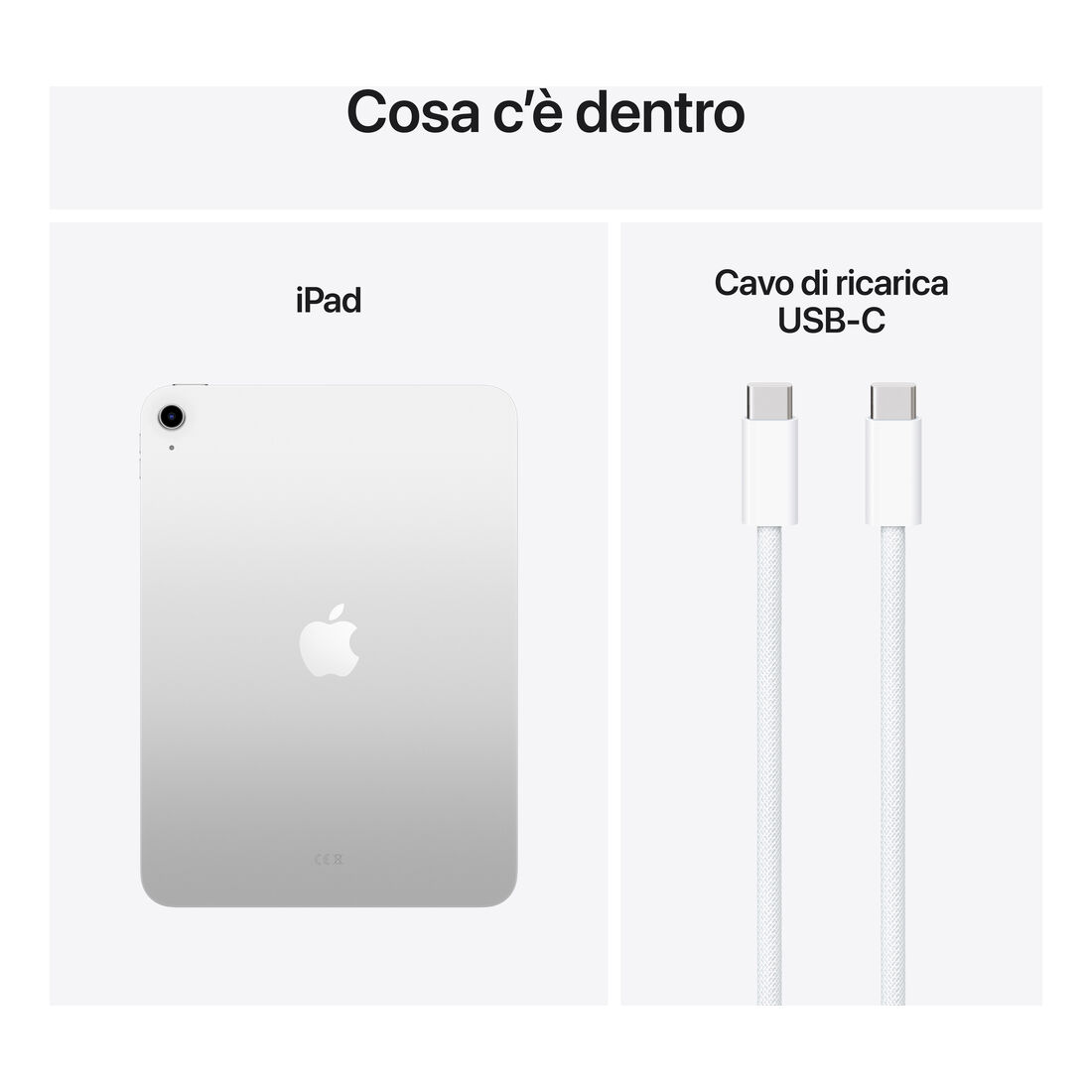 Apple iPad 11” Wi-Fi 512GB Argento. Dimensioni diagonale schermo: 27,9 cm (11″), Risoluzione del display: 2360 x 1640 Pixel, Tecnologia display: LED. Capacità memoria interna: 512 GB. Famiglia processore: Apple, Modello del processore: A16. Risoluzione fotocamera posteriore (numerico): 12 MP, Tipo di fotocamera posteriore: Fotocamera singola, Risoluzione fotocamera frontale (numerico): 12 MP, Fotocamera frontale. Wi-Fi standard: Wi-Fi 6 (802.11ax). Peso: 477 g. Sistema operativo incluso: iPadOS 18. Colore del prodotto: Argento