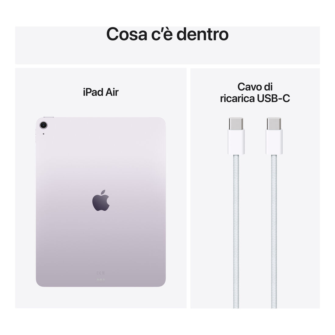 Apple iPad Air 13” Wi-Fi 512GB Viola. Dimensioni diagonale schermo: 33 cm (13″), Risoluzione del display: 2732 x 2048 Pixel, Tecnologia display: LED. Capacità memoria interna: 512 GB. Famiglia processore: Apple M, Modello del processore: M3. RAM installata: 8 GB. Risoluzione fotocamera posteriore (numerico): 12 MP, Tipo di fotocamera posteriore: Fotocamera singola, Risoluzione fotocamera frontale (numerico): 12 MP, Fotocamera frontale. Wi-Fi standard: Wi-Fi 6E (802.11ax). Peso: 616 g. Sistema operativo incluso: iPadOS 18. Colore del prodotto: Viola