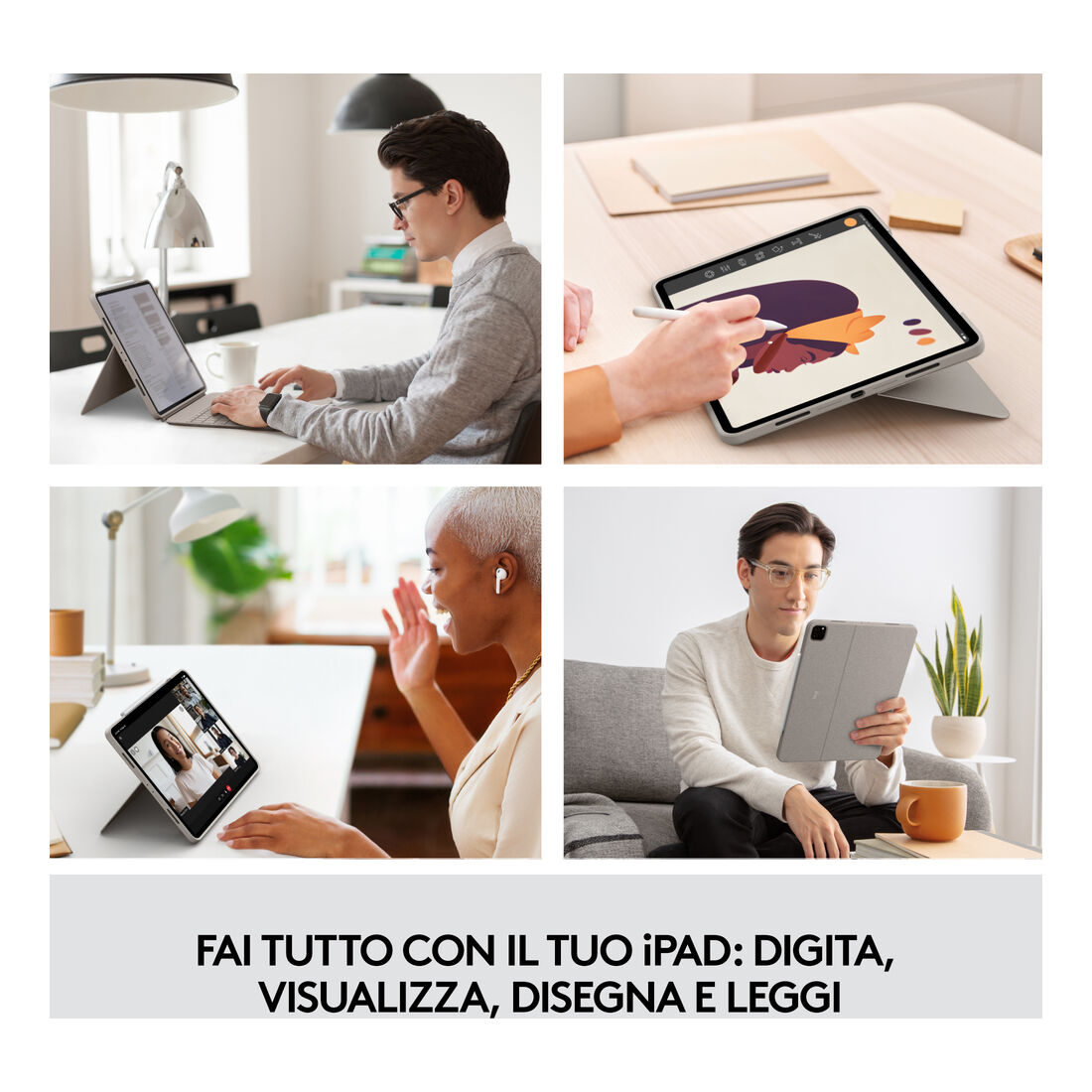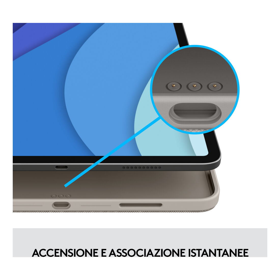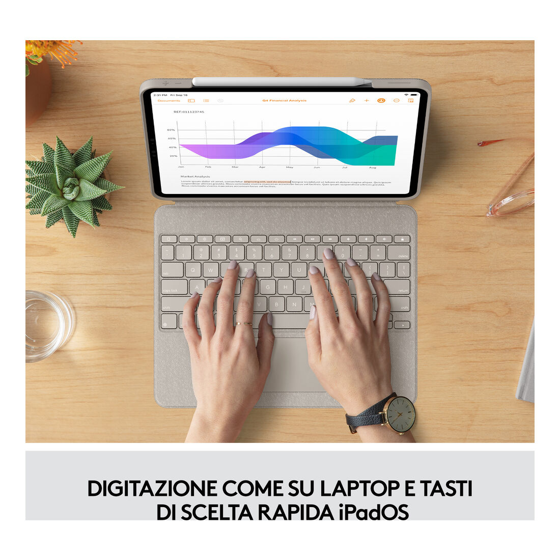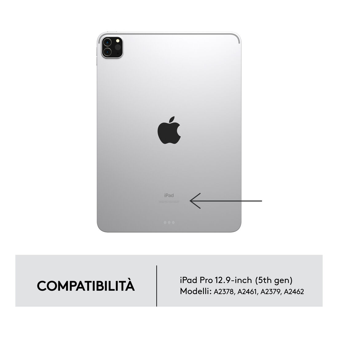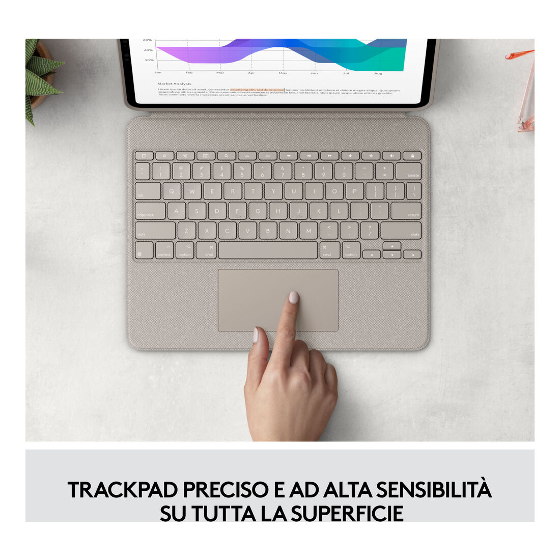 Logitech Combo Touch Custodia con Tastiera per iPad Pro 12,9 pollici (5a gen – 2021) – Tastiera Retroilluminata Rimovibile, Trackpad Click-Anywhere, Smart Connector -Sabbia. Struttura tastiera: QWERTY, Linguaggio tastiera: Italiano, Dispositivo di puntatura: Trackpad. Compatibilità marca: Apple, Compatibilità: {loc-value}, Colore del prodotto: Sabbia. Tecnologia di connessione: Docking, Interfaccia dispositivo: Smart Connector. Alimentazione: Dock. Sistema operativo mobile supportato: iPadOS
