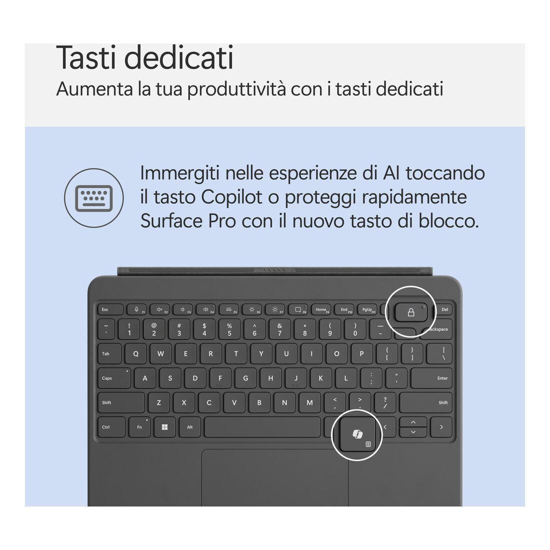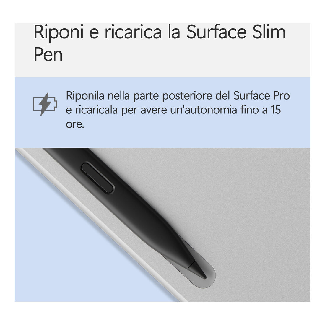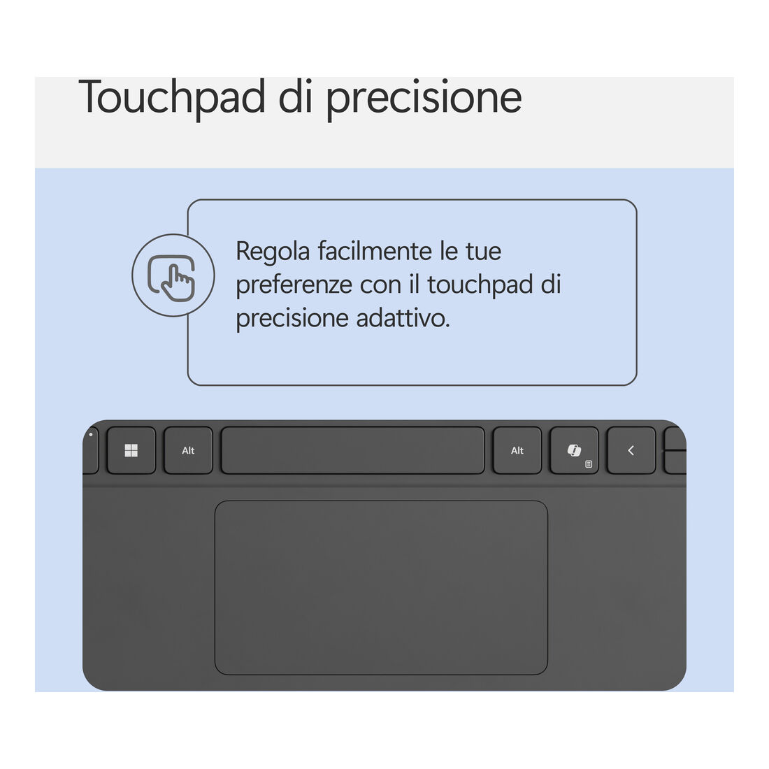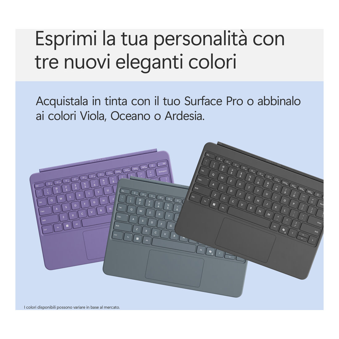 Microsoft Tastiera Surface Pro 12″ con Slim Pen – Ardesia. Struttura tastiera: QWERTY, Linguaggio tastiera: Italiano, Dispositivo di puntatura: Touchpad. Compatibilità marca: Microsoft, Compatibilità: Surface Pro 12, Colore del prodotto: Grigio. Tecnologia di connessione: Docking. Alimentazione: Dock. Larghezza: 192 mm, Profondità: 276 mm, Altezza: 6,8 mm