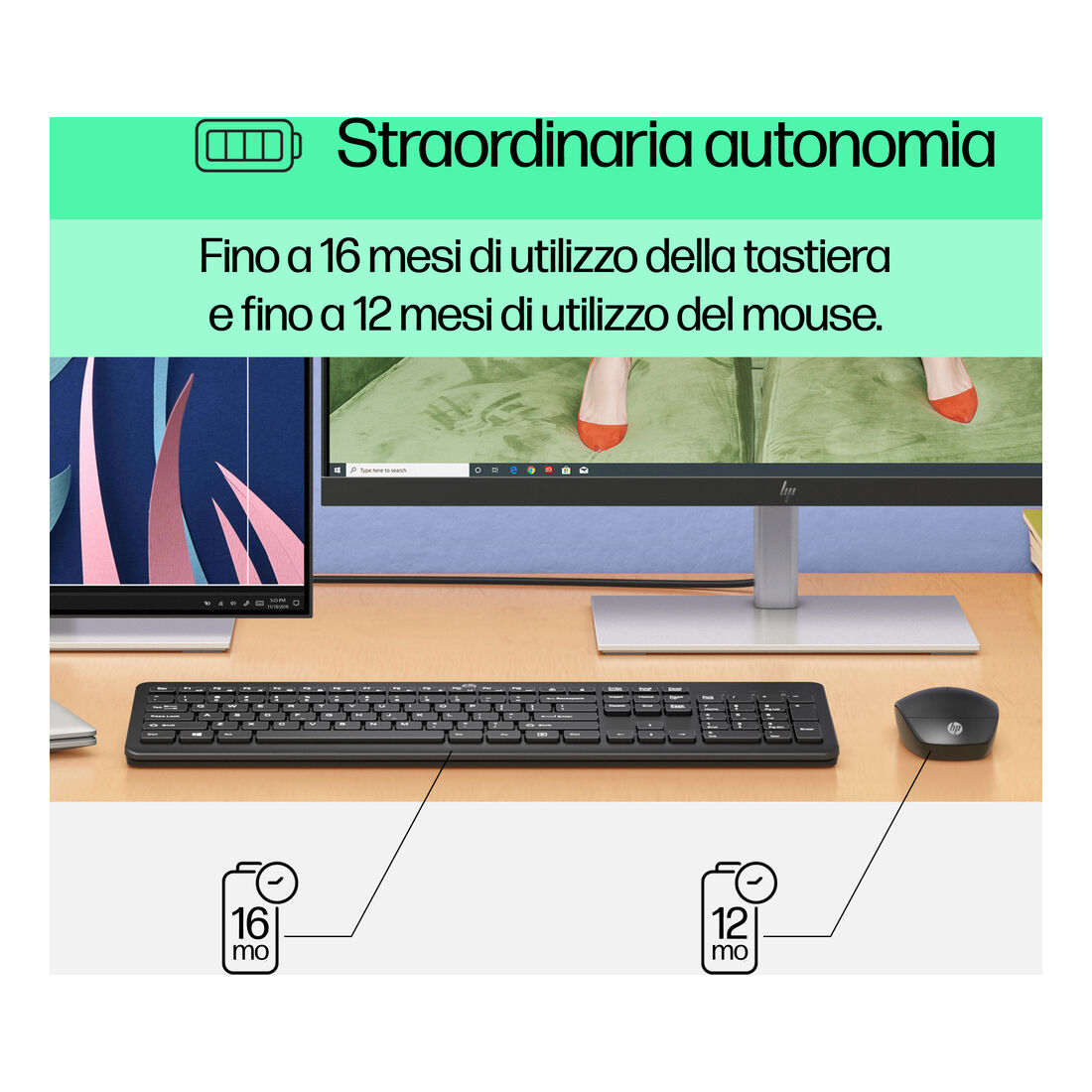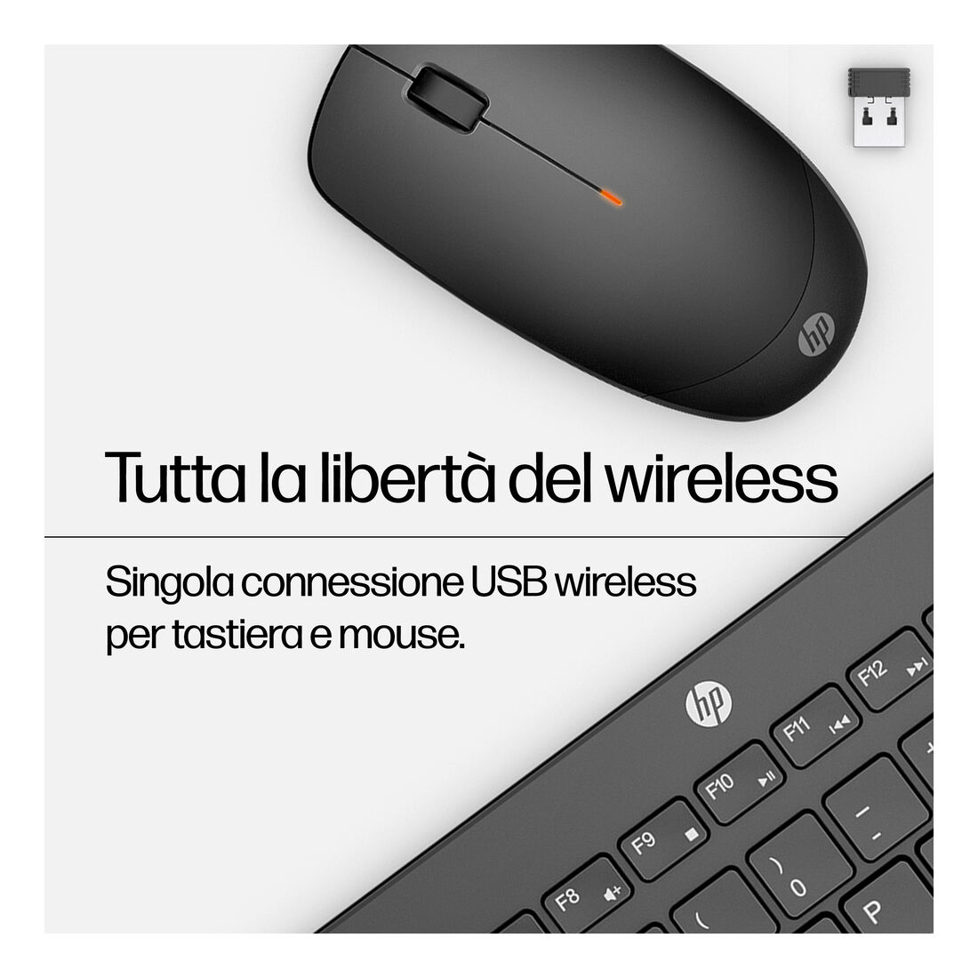 HP Combo tastiera e mouse wireless 230. Fattore di forma tastiera: Full-size (100%), Tecnologia di connessione: Wireless, Interfaccia dispositivo: RF Wireless, Interruttore a chiave per tastiera: Interruttore a chiave a membrana. Colore del prodotto: Bianco. Mouse incluso