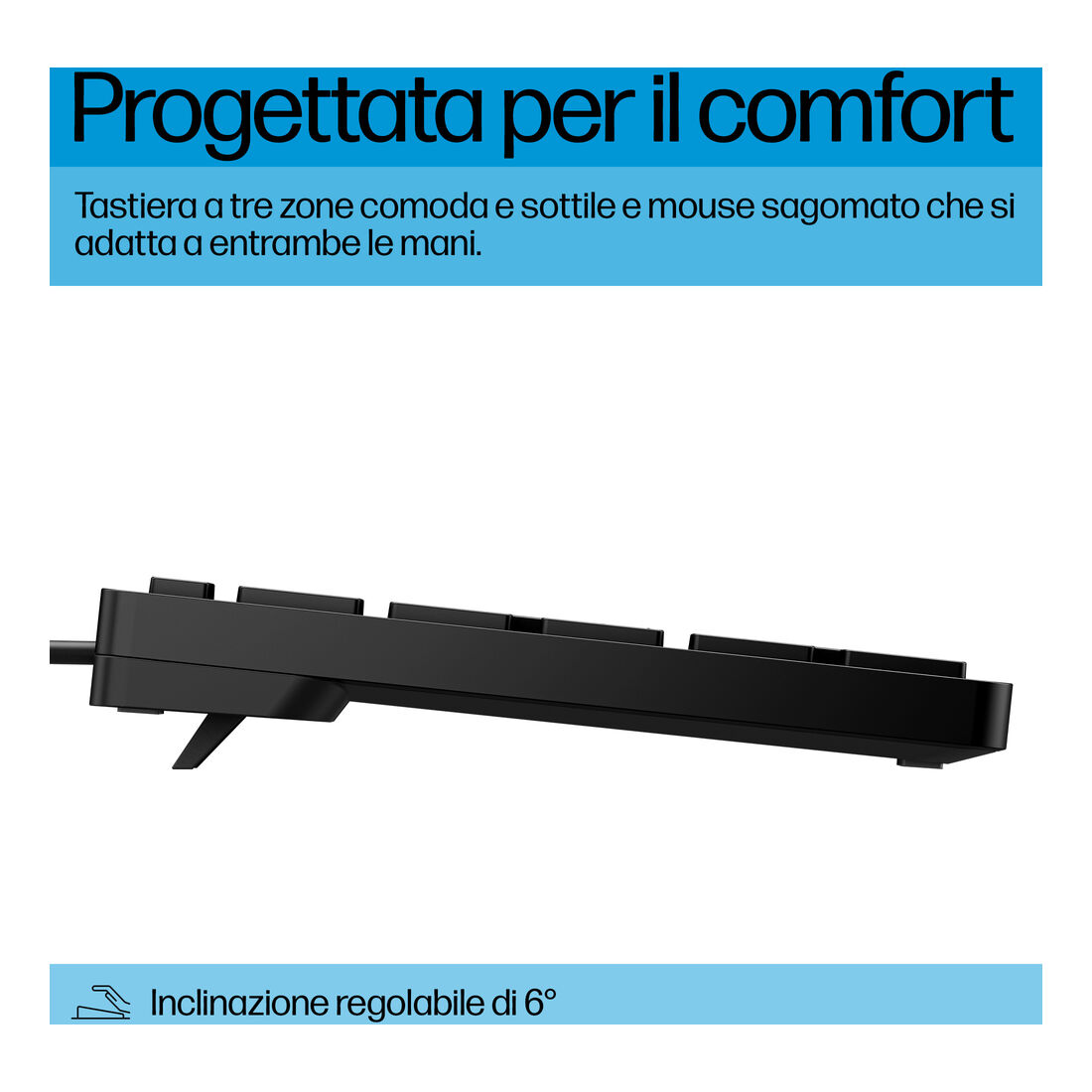 HP Mouse e tastiera Wired Desktop 320MK. Tecnologia di connessione: Cablato, Interfaccia dispositivo: USB, Interruttore a chiave per tastiera: Interruttore a chiave a membrana. Colore del prodotto: Nero. Mouse incluso