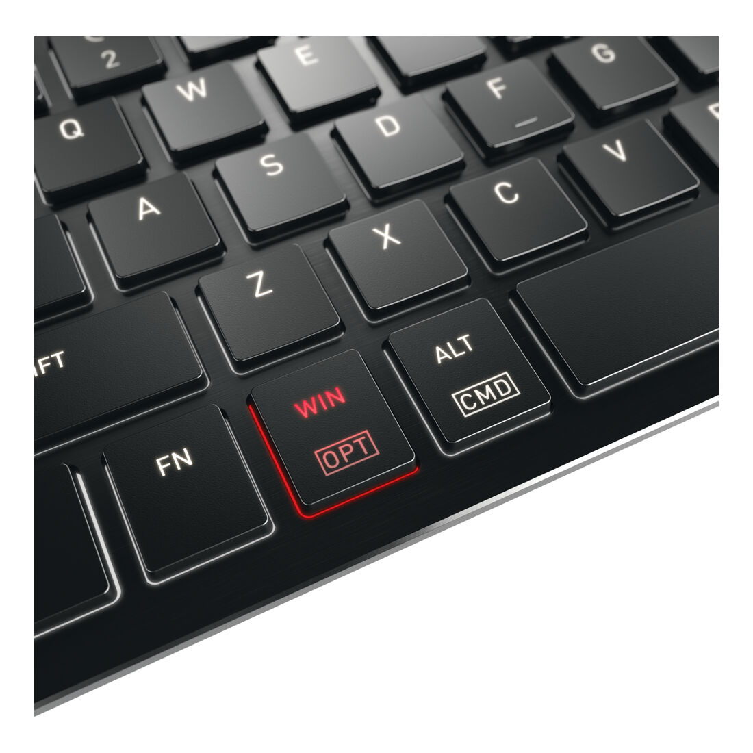 CHERRY KW X ULP 2.0 MINI. Fattore di forma tastiera: 75%. Stile tastiera: Dritto. Tecnologia di connessione: Con cavo e senza cavo, Interfaccia dispositivo: USB + RF Wireless + Bluetooth, Interruttore a chiave per tastiera: Interruttore a chiave meccanica, Struttura tastiera: QWERTY. Tipologia di retroilluminazione: LED. Utilizzo raccomandato: Casa/ufficio. Colore del prodotto: Nero