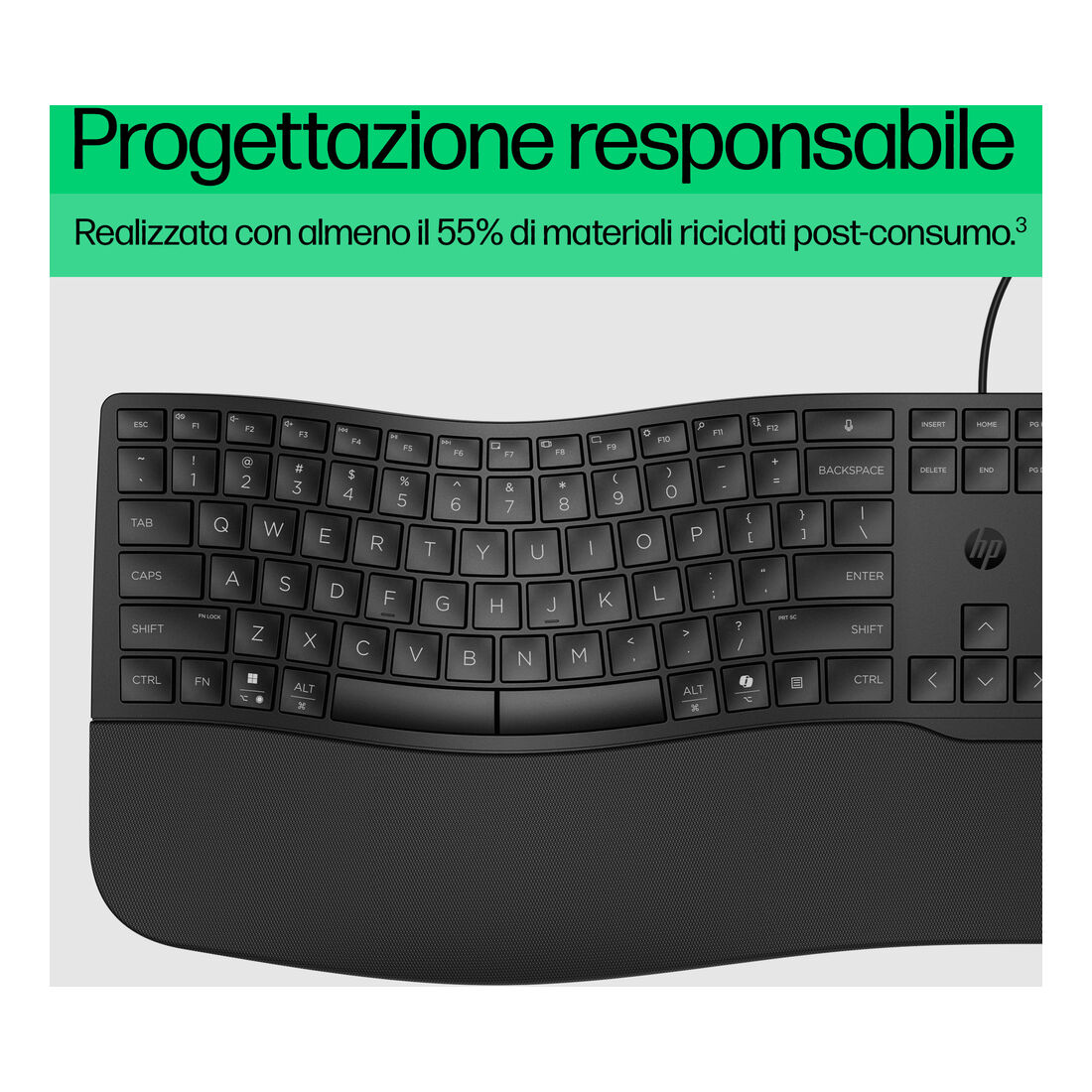 HP Tastiera cablata 480 Comfort. Fattore di forma tastiera: Full-size (100%), Tecnologia di connessione: Cablato, Interfaccia dispositivo: USB. Lunghezza cavo: 1,5 m. Utilizzo raccomandato: Casa. Colore del prodotto: Nero