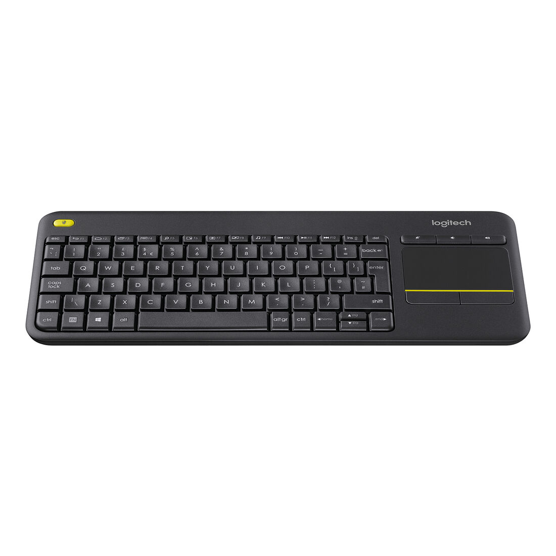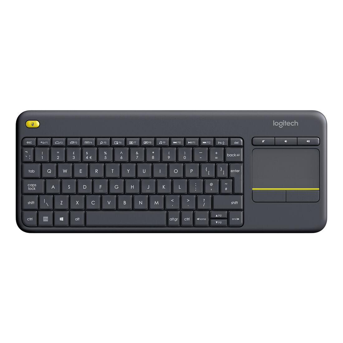 Logitech K400 Plus. Fattore di forma tastiera: Mini. Stile tastiera: Dritto. Tecnologia di connessione: Wireless, Interfaccia dispositivo: RF Wireless, Struttura tastiera: QWERTY, Utilizzo raccomandato: Casa. Colore del prodotto: Nero
