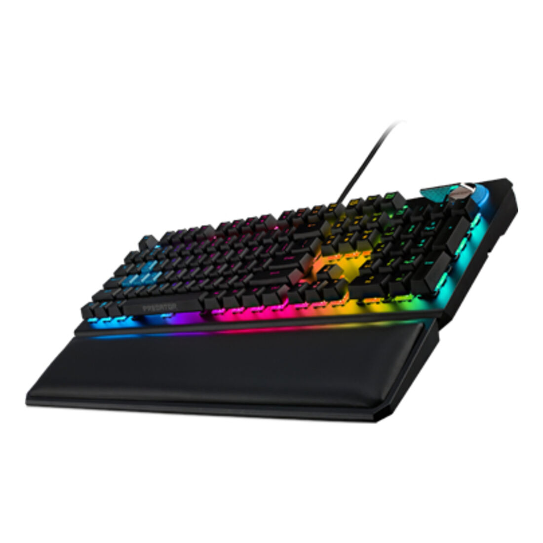 Acer Predator Aethon 700. Fattore di forma tastiera: Full-size (100%), Interruttore a chiave per tastiera: Interruttore a chiave opto-meccanico, Struttura tastiera: QWERTY. Tipologia di retroilluminazione: LED RGB, Riposo del polso. Utilizzo raccomandato: Gaming. Colore del prodotto: Metallico