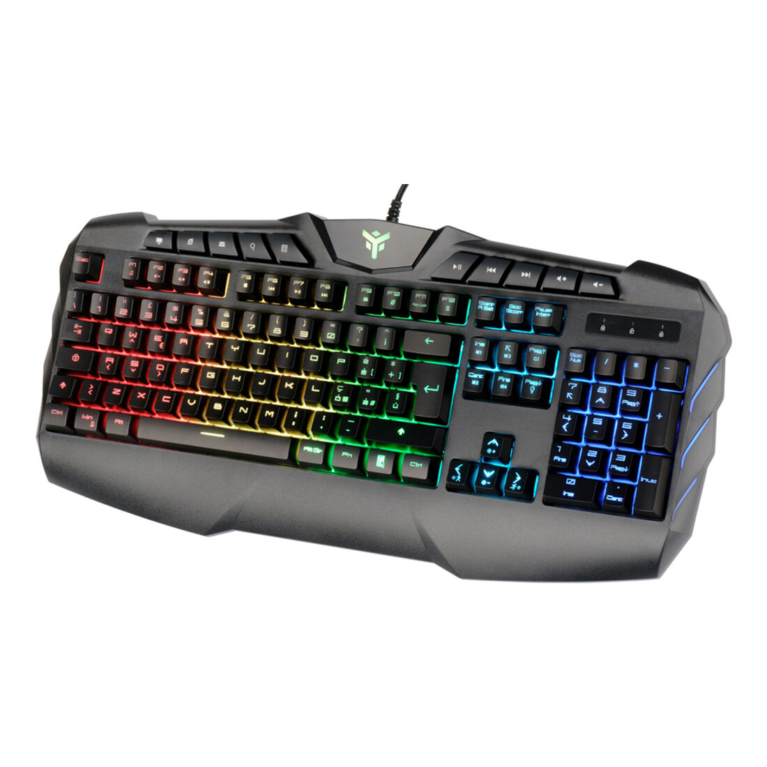 itek T20. Fattore di forma tastiera: Full-size (100%). Stile tastiera: Dritto. Tecnologia di connessione: Cablato, Interfaccia dispositivo: USB, Interruttore a chiave per tastiera: Interruttore a chiave a membrana. Tipologia di retroilluminazione: LED RGB, Riposo del polso. Lunghezza cavo: 1,5 m. Utilizzo raccomandato: Gaming. Colore del prodotto: Nero. Mouse incluso