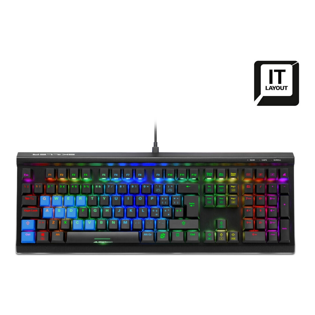Sharkoon SKILLER SGK60. Fattore di forma tastiera: Full-size (100%). Stile tastiera: Dritto. Tecnologia di connessione: Cablato, Interfaccia dispositivo: USB, Interruttore a chiave per tastiera: Interruttore a chiave meccanica, Struttura tastiera: QWERTY. Tipologia di retroilluminazione: LED RGB. Utilizzo raccomandato: Gaming. Colore del prodotto: Nero