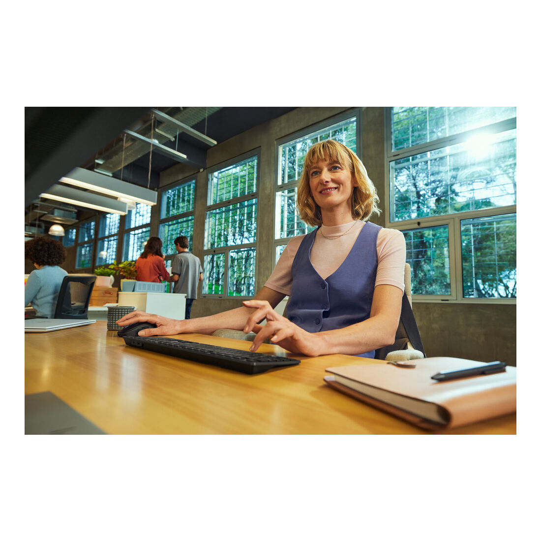 HP Combinazione di tastiera e mouse wireless ricaricabili multidispositivo 725. Fattore di forma tastiera: Full-size (100%), Tecnologia di connessione: Wireless, Interfaccia dispositivo: RF senza fili + Bluetooth, Interruttore a chiave per tastiera: Tasto con meccanismo a forbici, Utilizzo raccomandato: Ufficio. Colore del prodotto: Nero. Mouse incluso