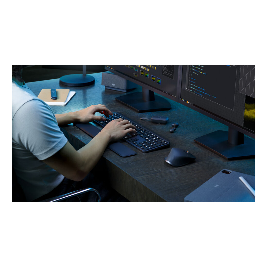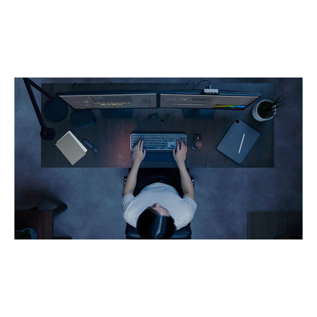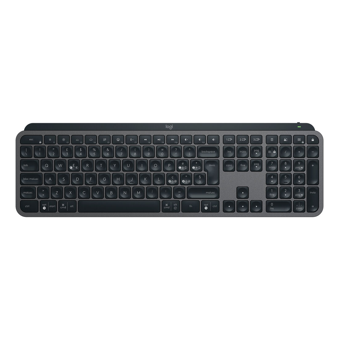 Logitech MX Keys S. Fattore di forma tastiera: Full-size (100%). Stile tastiera: Dritto. Tecnologia di connessione: Wireless, Interfaccia dispositivo: Bluetooth, Interruttore a chiave per tastiera: Tasto con meccanismo a forbici, Struttura tastiera: QWERTY. Tipologia di retroilluminazione: LED. Utilizzo raccomandato: Universale. Colore del prodotto: Grafite
