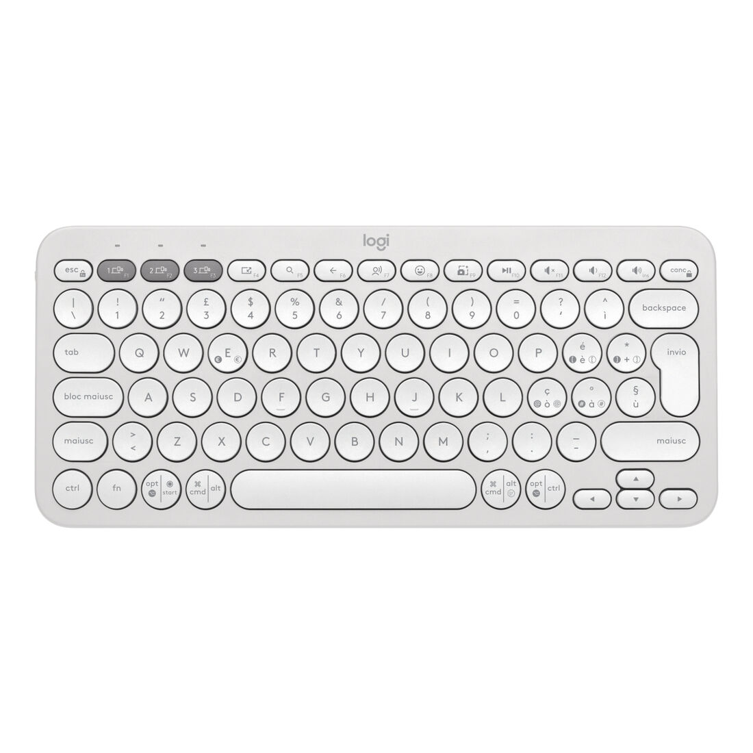 Logitech Pebble Keys 2 K380s. Fattore di forma tastiera: Mini. Stile tastiera: Dritto. Tecnologia di connessione: Wireless, Interfaccia dispositivo: Bluetooth, Interruttore a chiave per tastiera: Tasto con meccanismo a forbici, Struttura tastiera: QWERTY, Utilizzo raccomandato: Universale. Colore del prodotto: Bianco