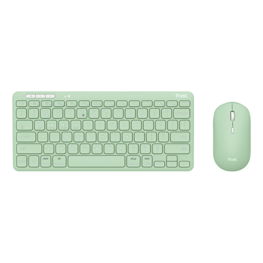 Trust Lyra. Fattore di forma tastiera: Mini. Stile tastiera: Dritto. Tecnologia di connessione: Wireless, Interfaccia dispositivo: RF senza fili + Bluetooth, Interruttore a chiave per tastiera: Tasto con meccanismo a forbici, Struttura tastiera: QWERTY, Utilizzo raccomandato: Universale. Colore del prodotto: Verde. Mouse incluso