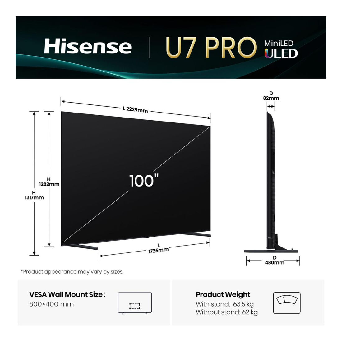 Hisense 100U7Q PRO 2,54 m (100″) 4K Ultra HD Smart TV Wi-Fi Nero