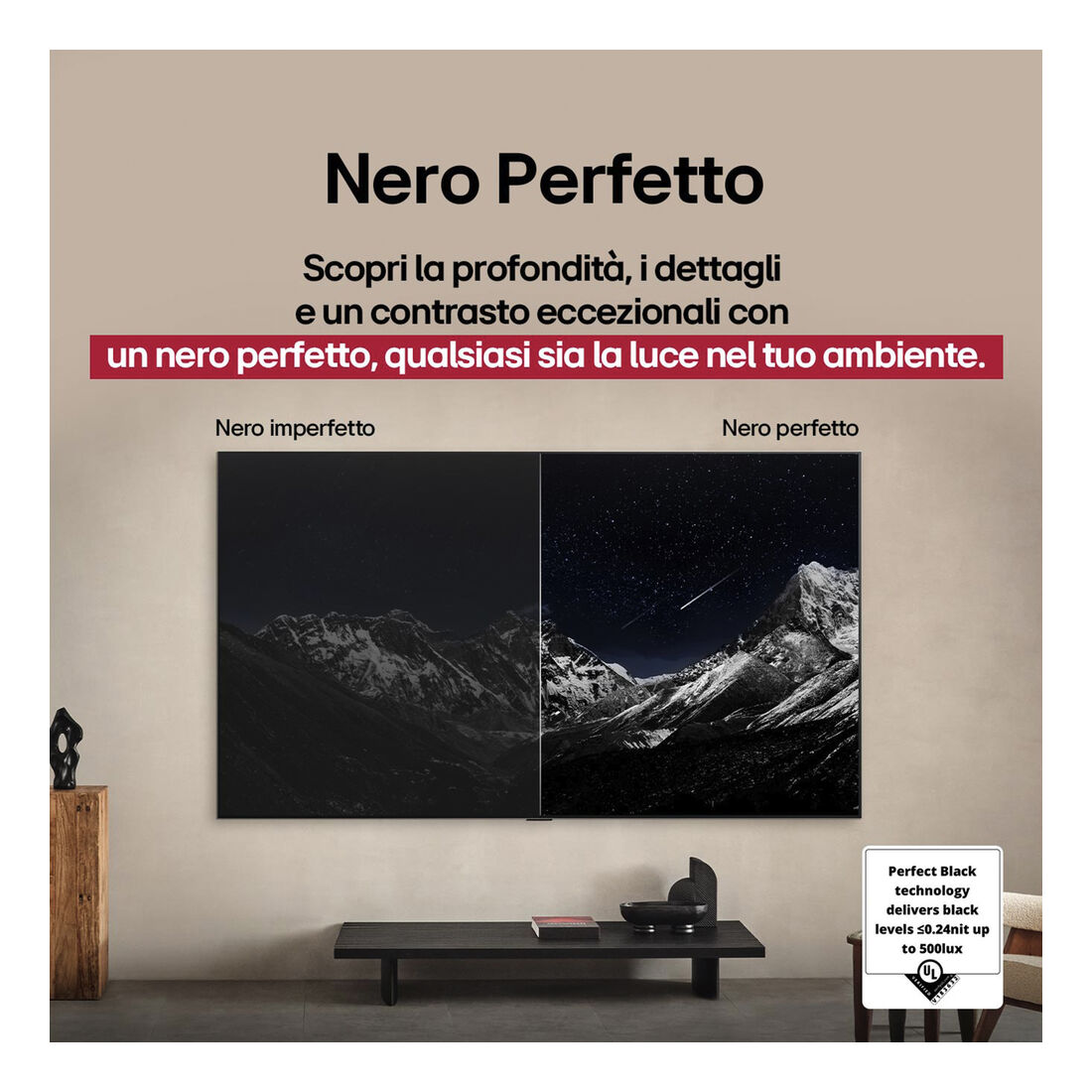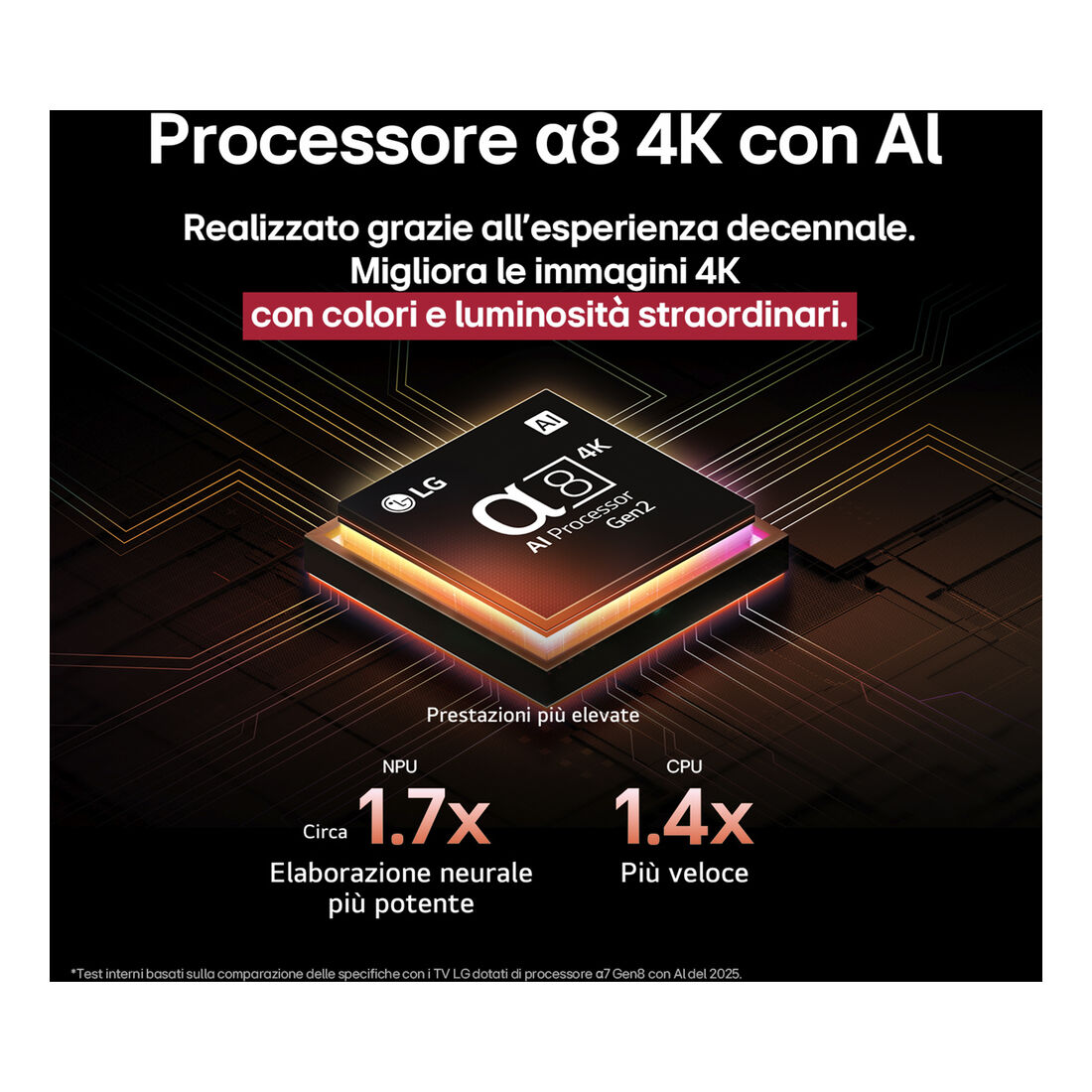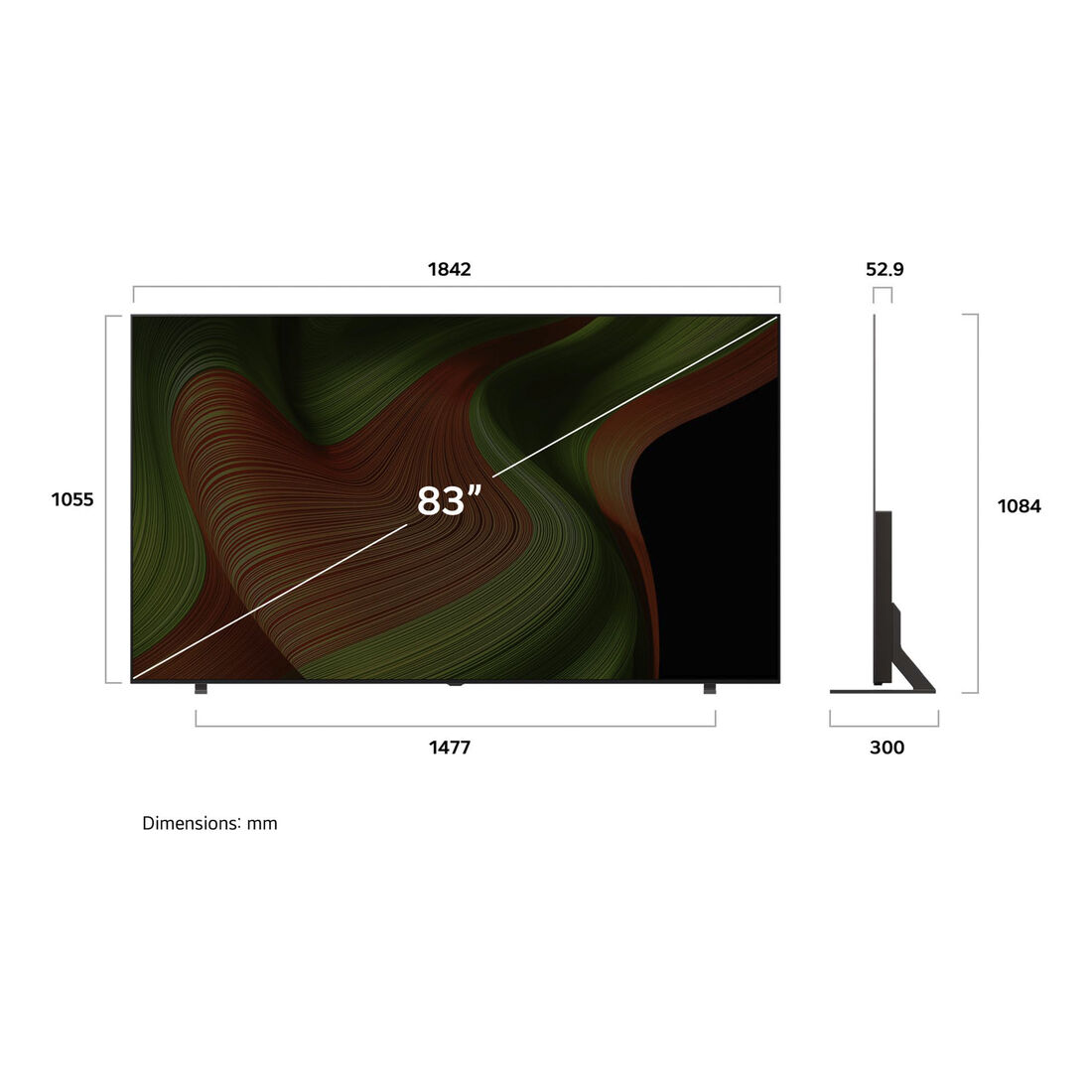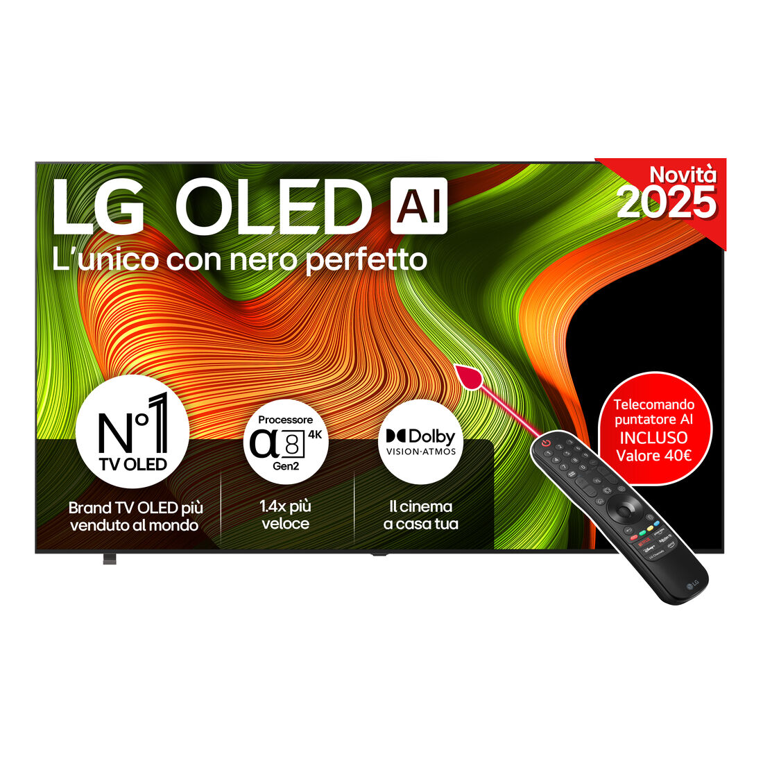 LG OLED AI OLED83B56LA TV Serie B5 83” 4K, α8 Gen2, Dolby Vision, 20W, 4 HDMI con VRR 120Hz, G-Sync, Smart TV WebOS 25. Dimensioni diagonale schermo: 2,11 m (83″), Risoluzione del display: 3840 x 2160 Pixel, Tipologia HD: 4K Ultra HD, Tecnologia display: OLED, Forma dello schermo: Piatto. Smart TV. Tecnologia di interpolazione del movimento: Movimento OLED, Tempo di risposta: 0,1 ms, Rapporto d’aspetto nativo: 16:9. Formato del segnale digitale: DVB-C, DVB-S, DVB-S2, DVB-T, DVB-T2. Wi-Fi, Collegamento ethernet LAN. Colore del prodotto: Nero